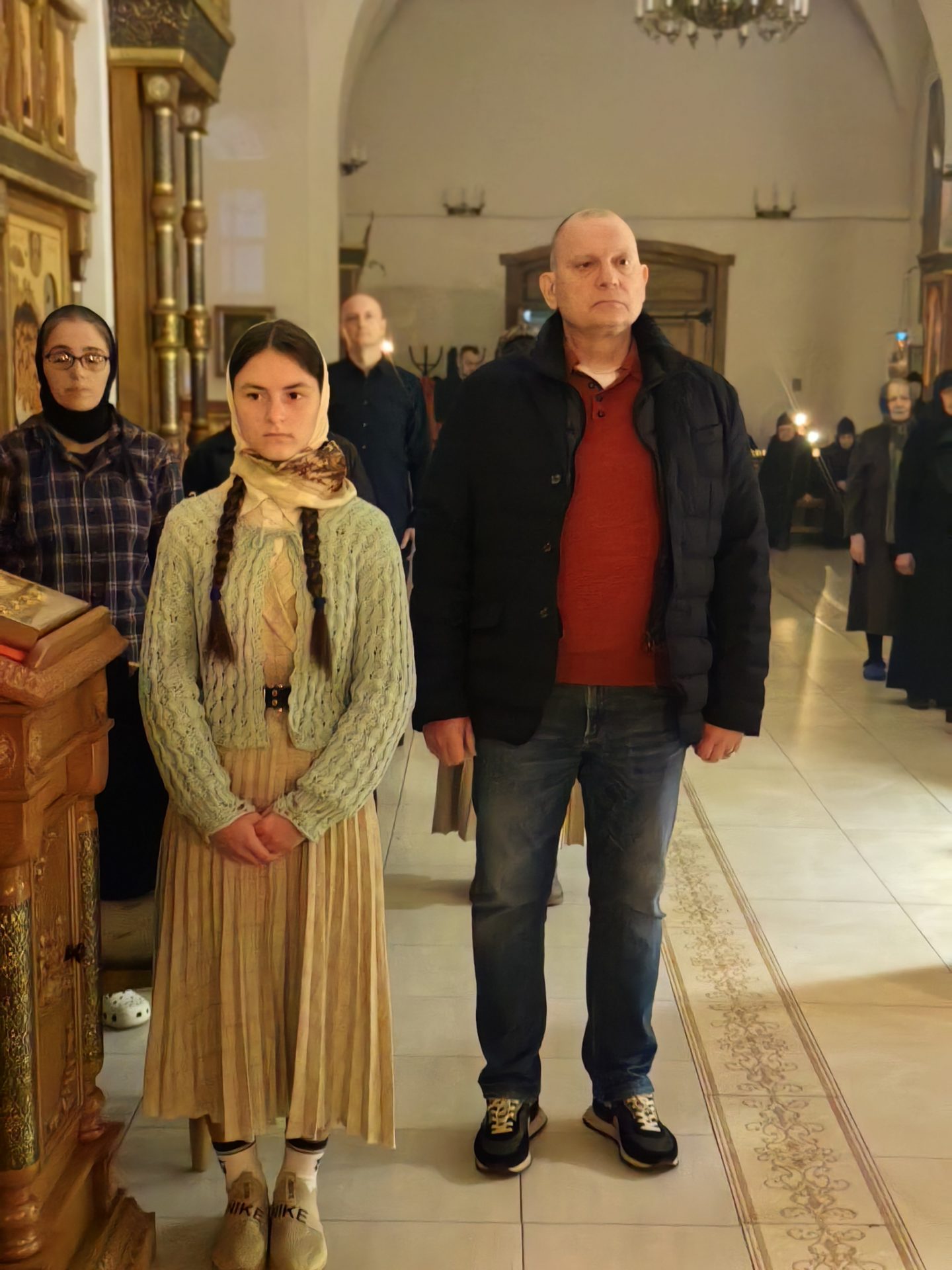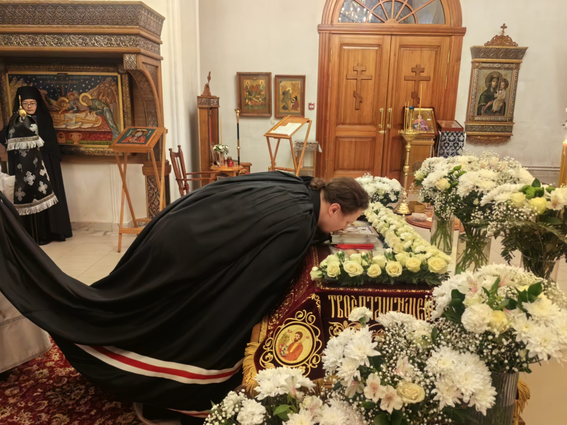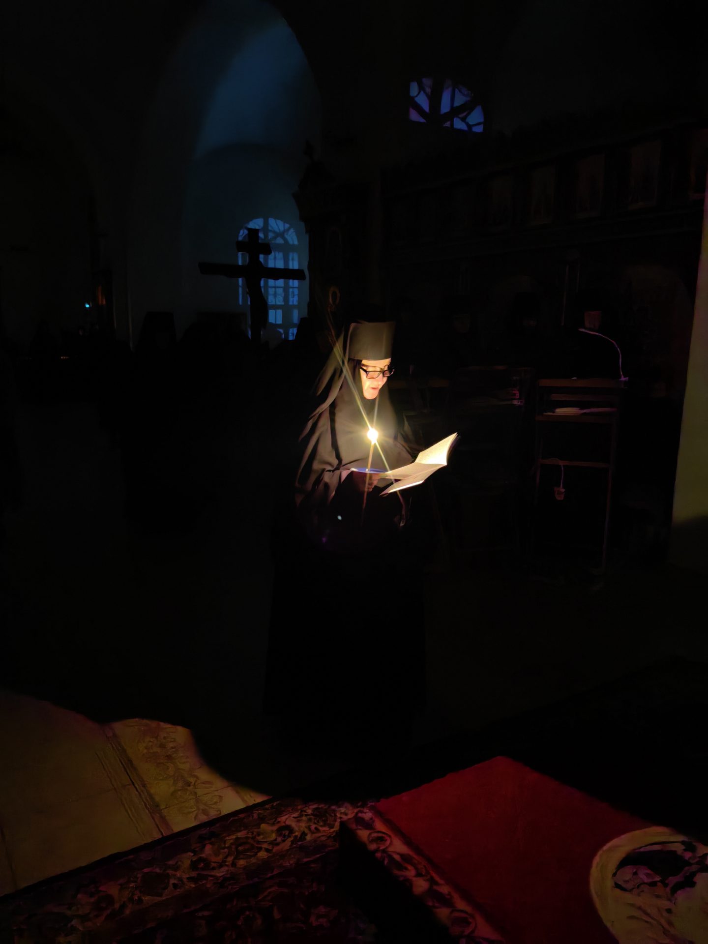 За богослужением молилась и.о. игумении обители монахиня Антония (Бубнова) с сестрами обители.