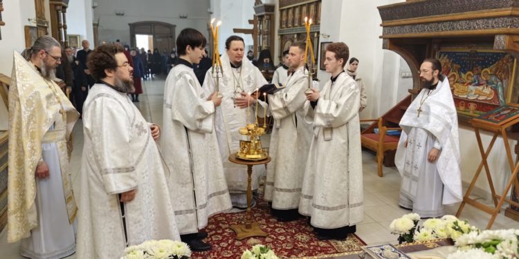 Архипастырю сослужили: священник Алексий Боков, священник Антоний Лунин и диакон Николай Кречетов.