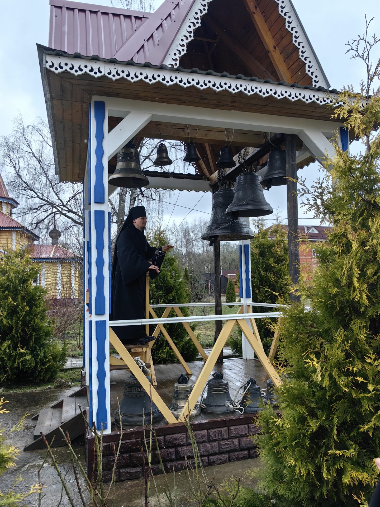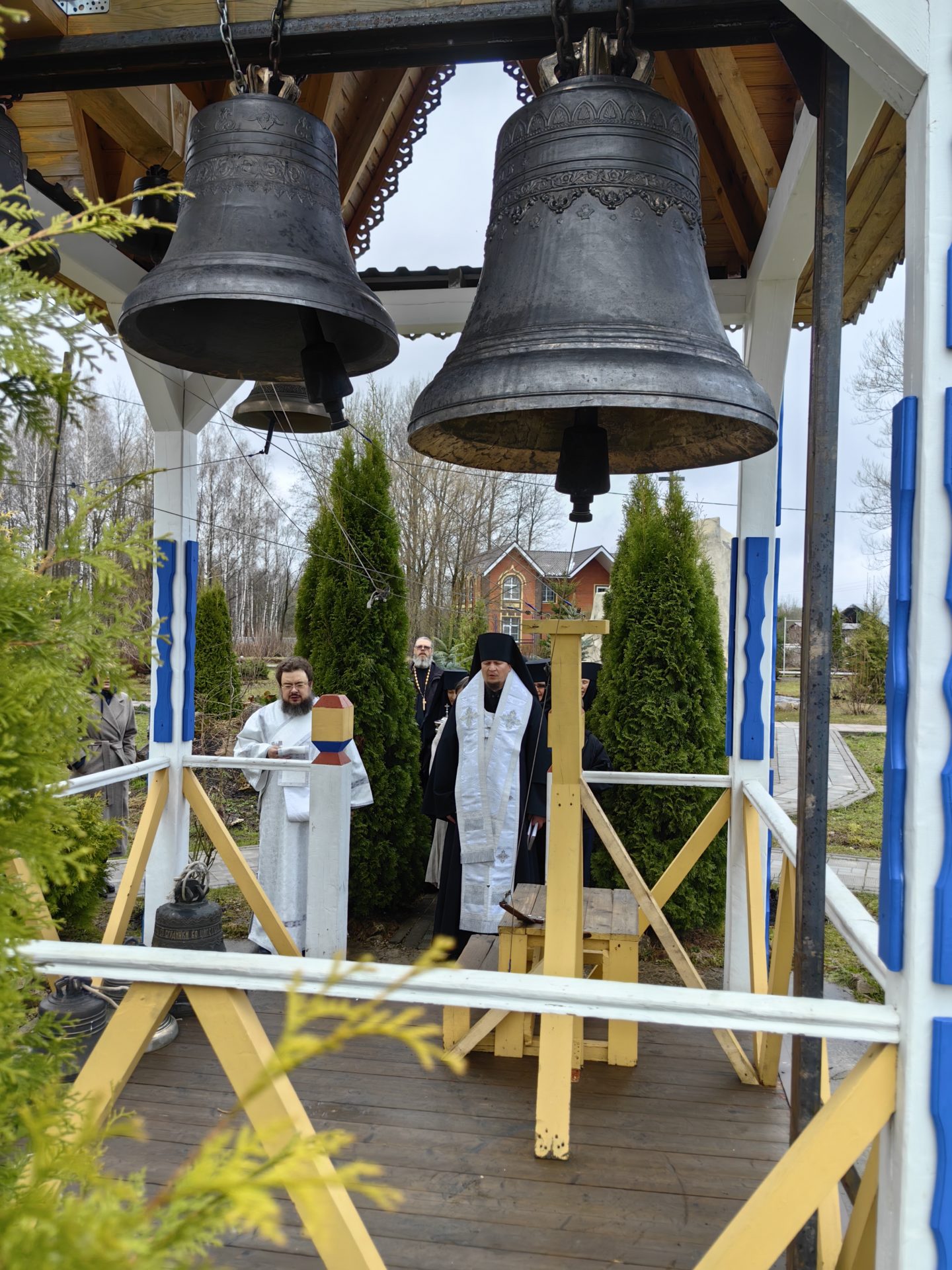 По окончании богослужения также епископ Макарий в сослужении диакона Николая Кречетова освятил новый комплект колоколов для звонницы обители.