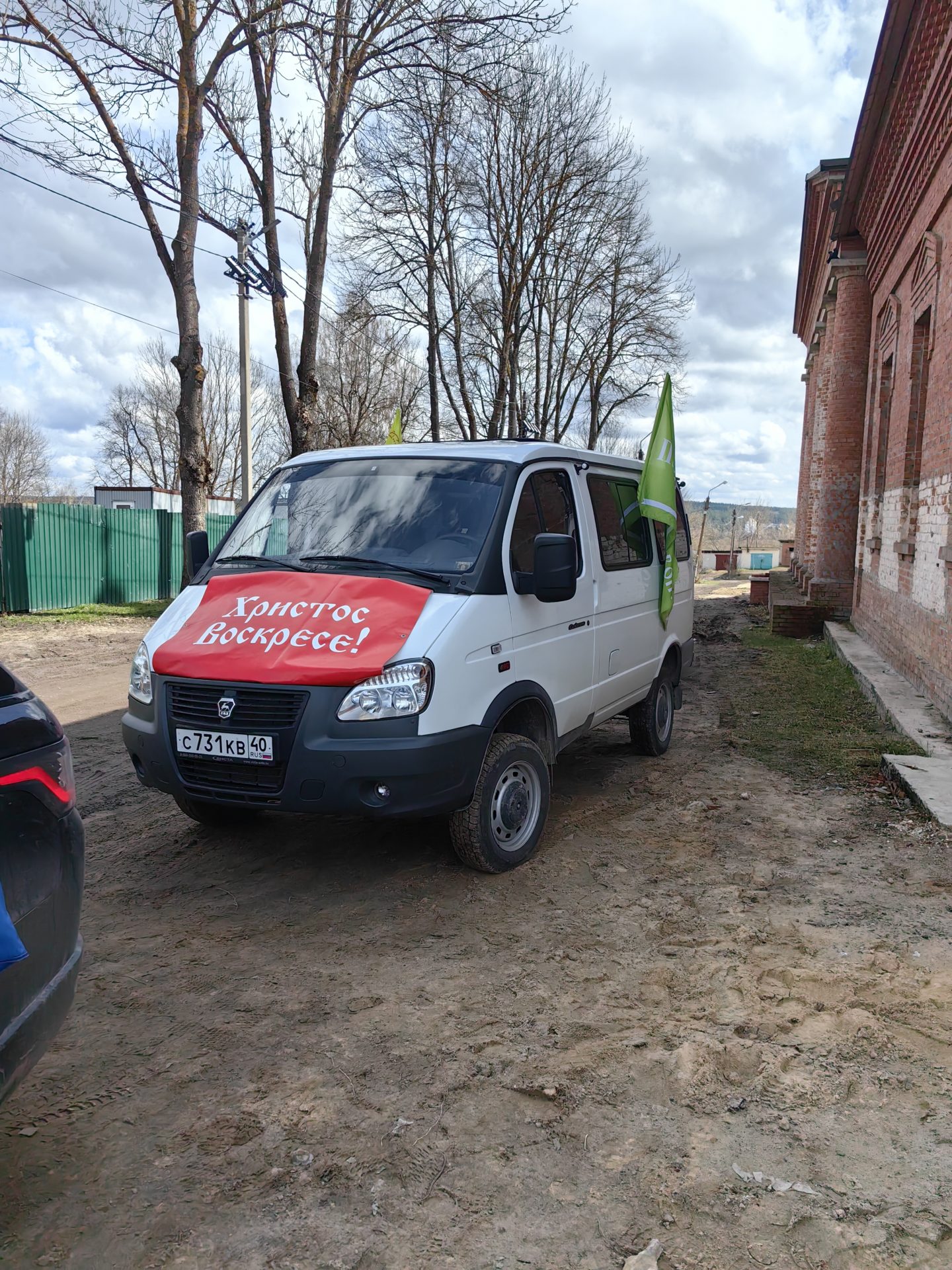 По согласованию с администрацией Козельского муниципального округа и ГИБДД в автопробеге участвовало более 20 автомобилей, украшенных пасхальными флагами и растяжками с пасхальными приветствием: «Христос Воскресе!»