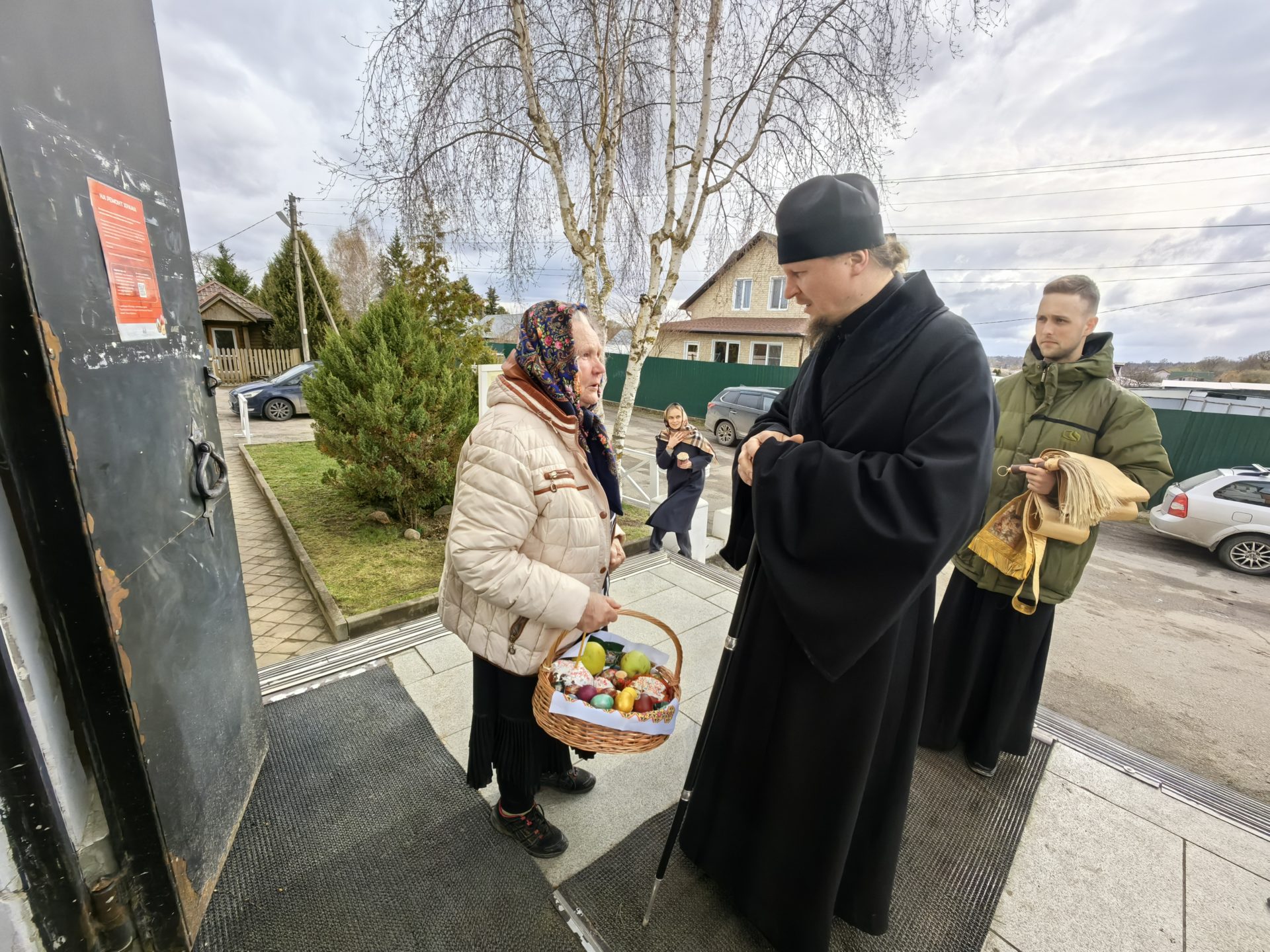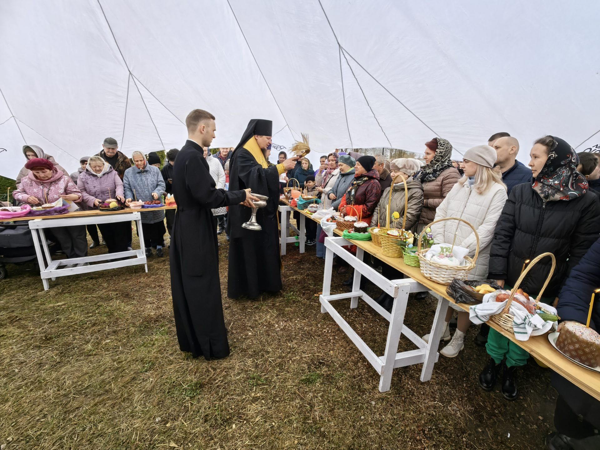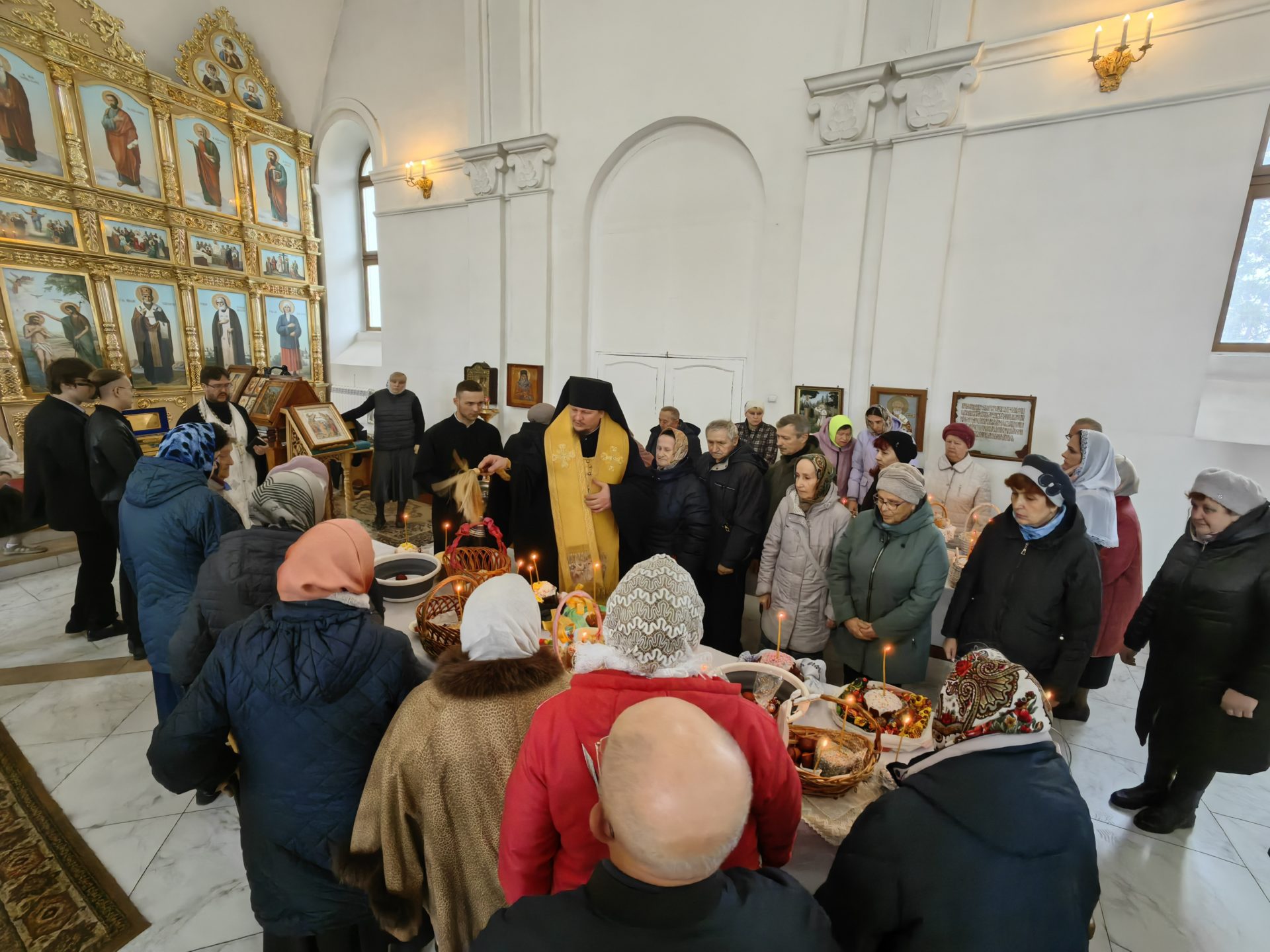 На приходах архипастырь оценил подготовку к празднику Пасхи, украшение храмов, пообщался с настоятелями, а также совершил освящение пасхальных куличей и яиц прихожан, собравшихся в храмы.