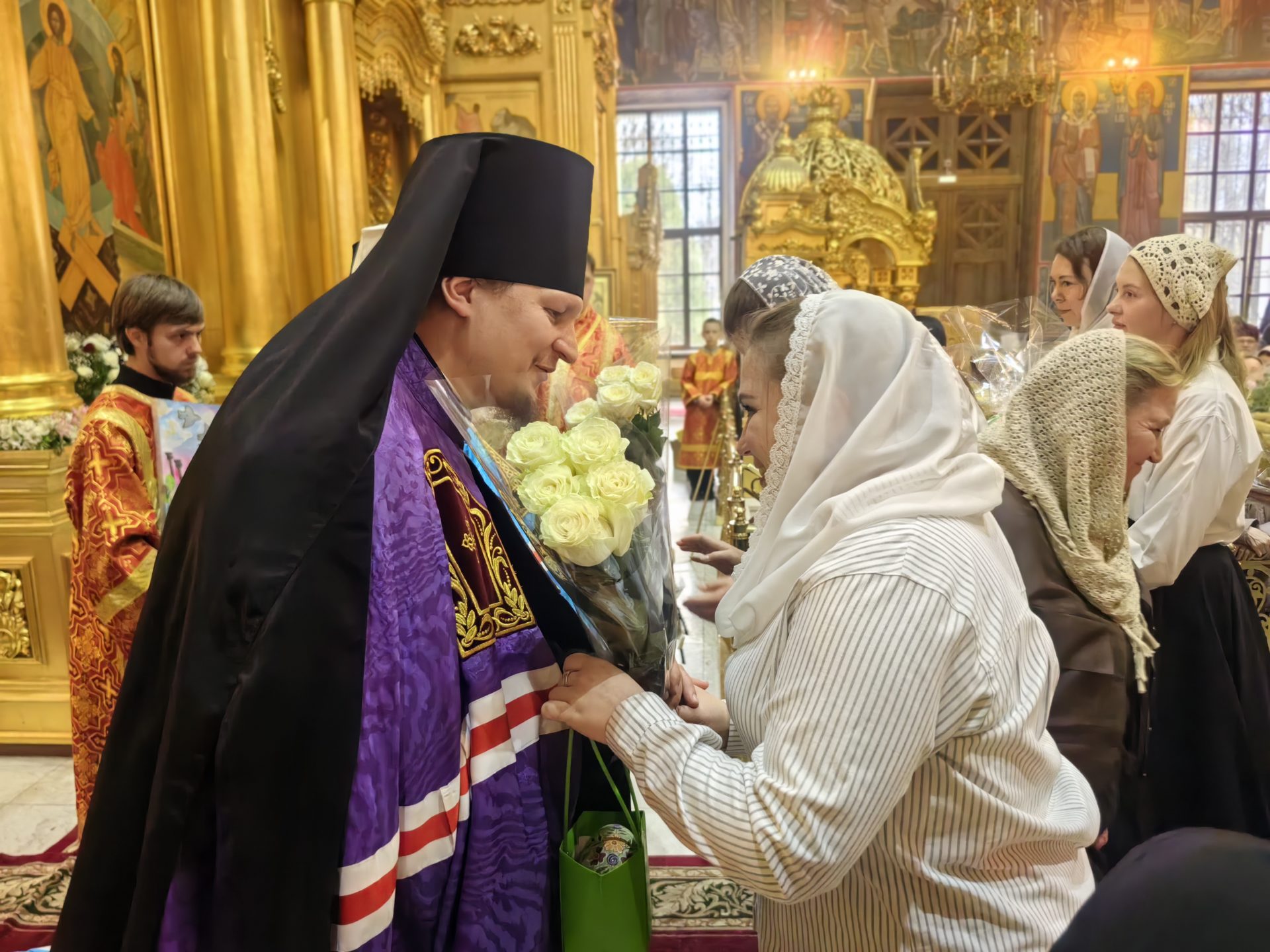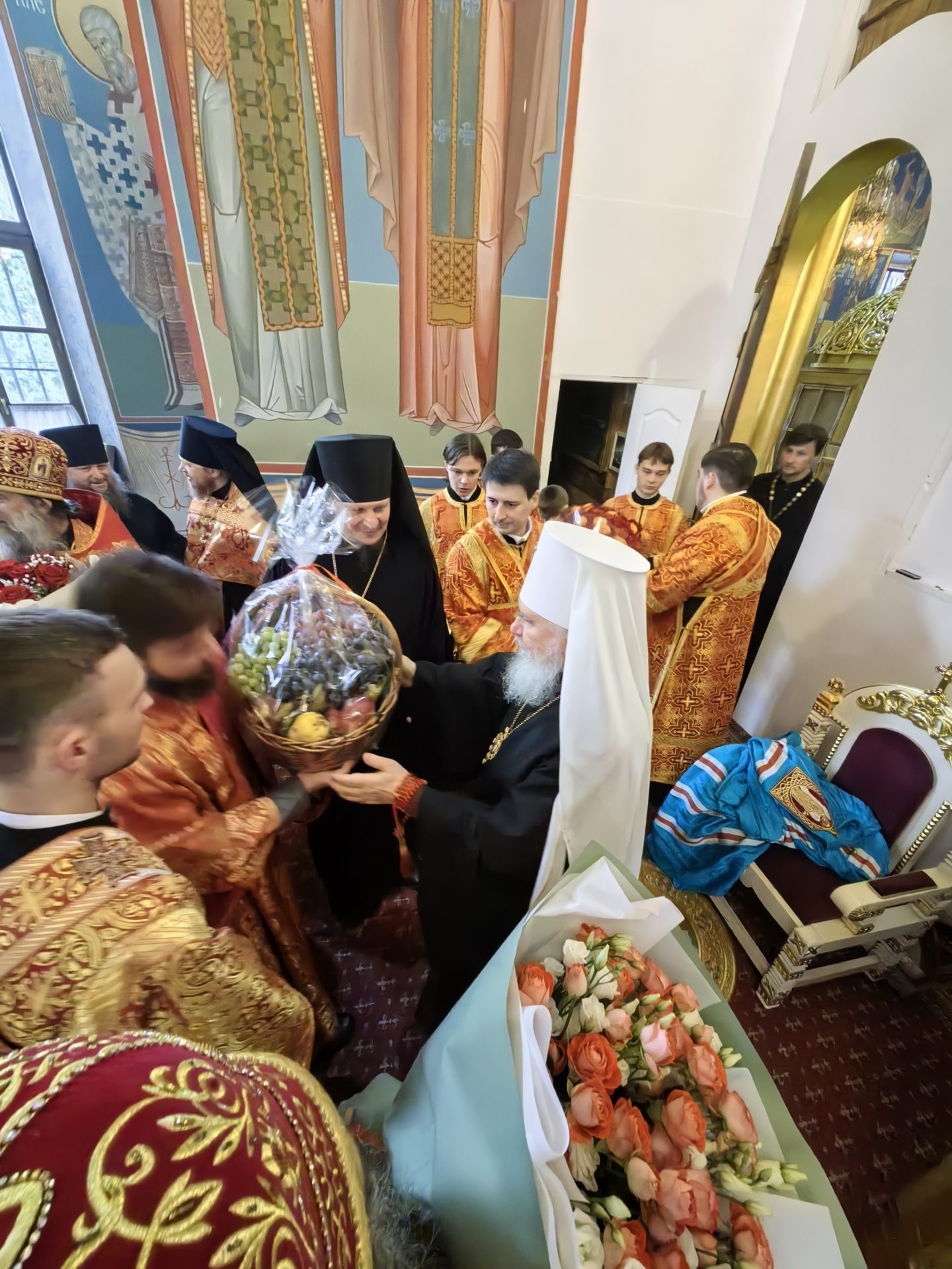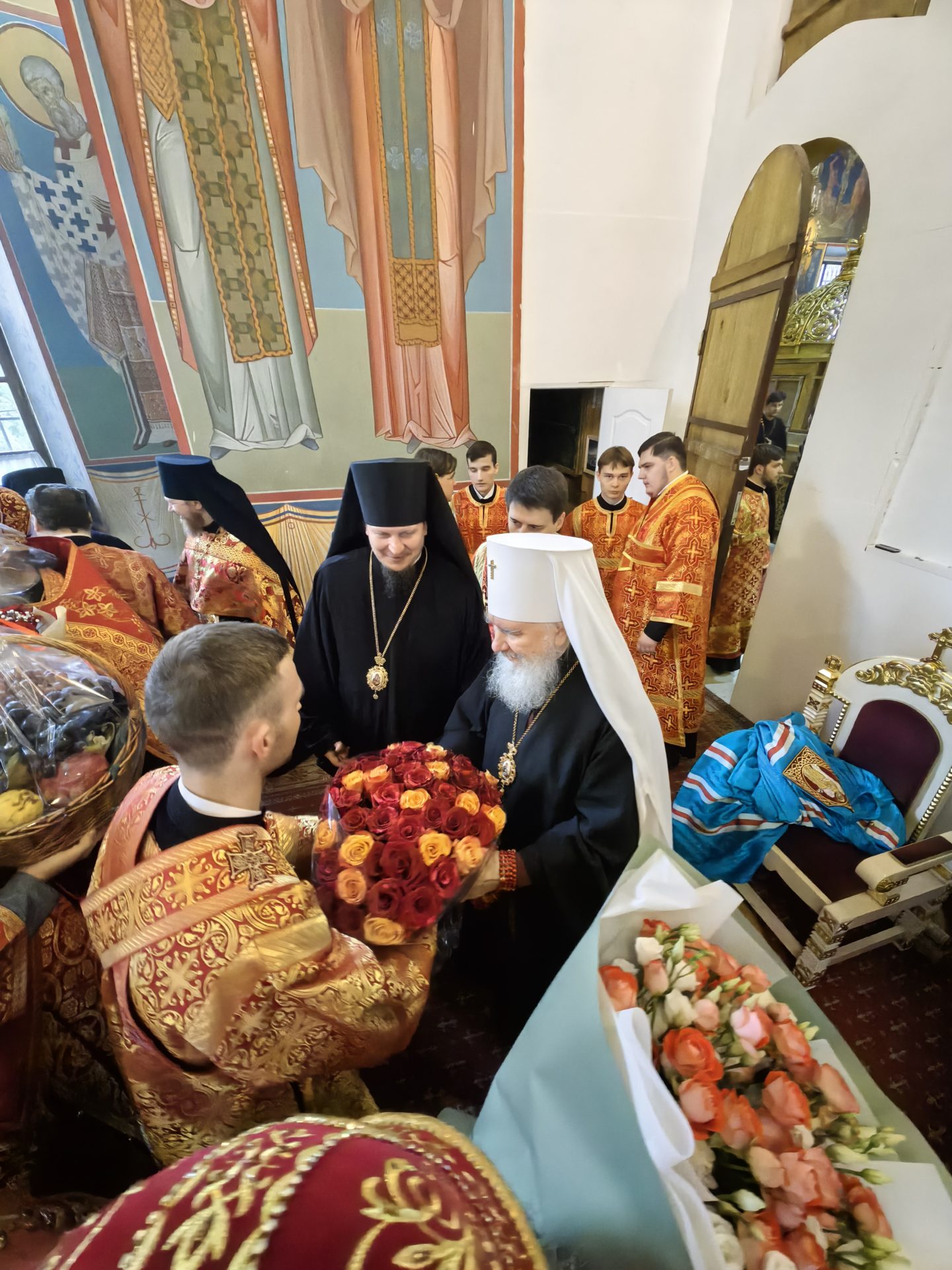 После окончания вечерни епископ Макарий с духовенством епархии поздравил митрополита Климента с праздником Пасхи Христовой и преподнес владыке букет цветов.