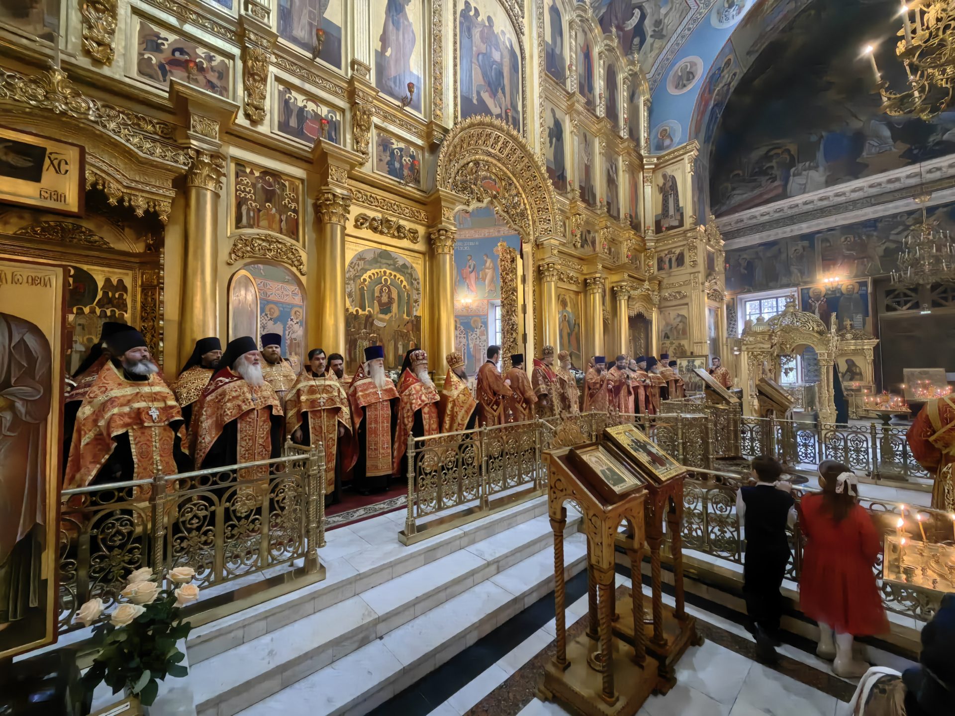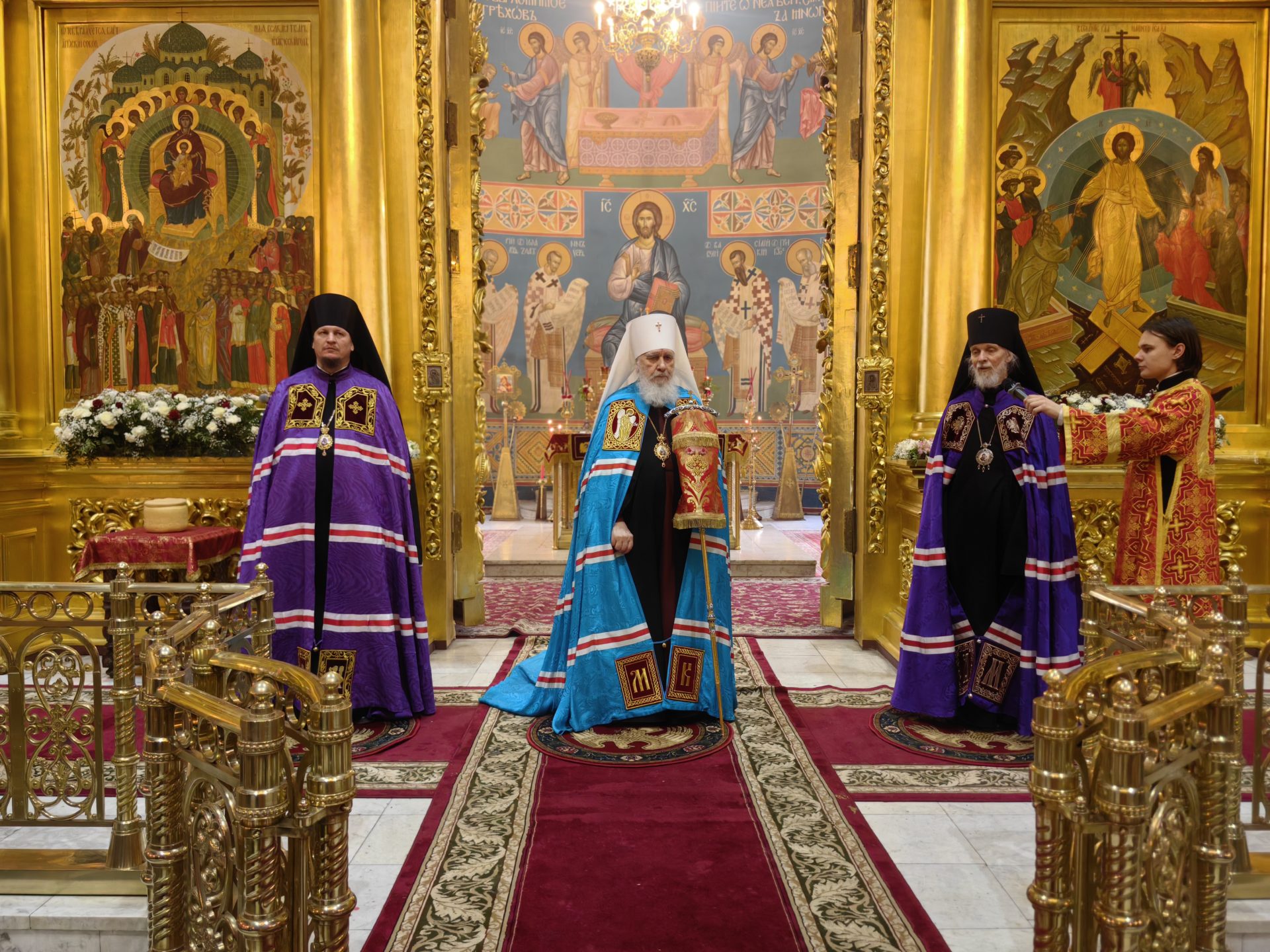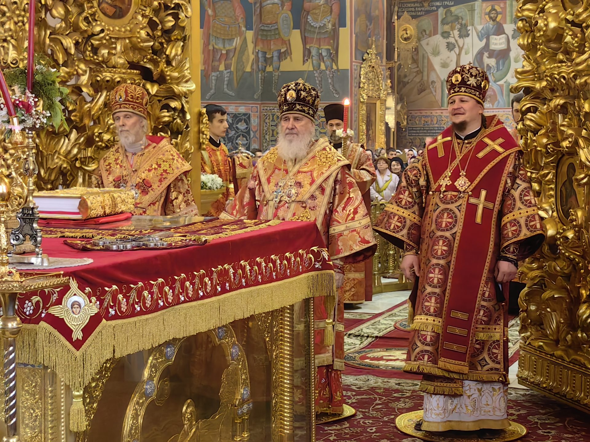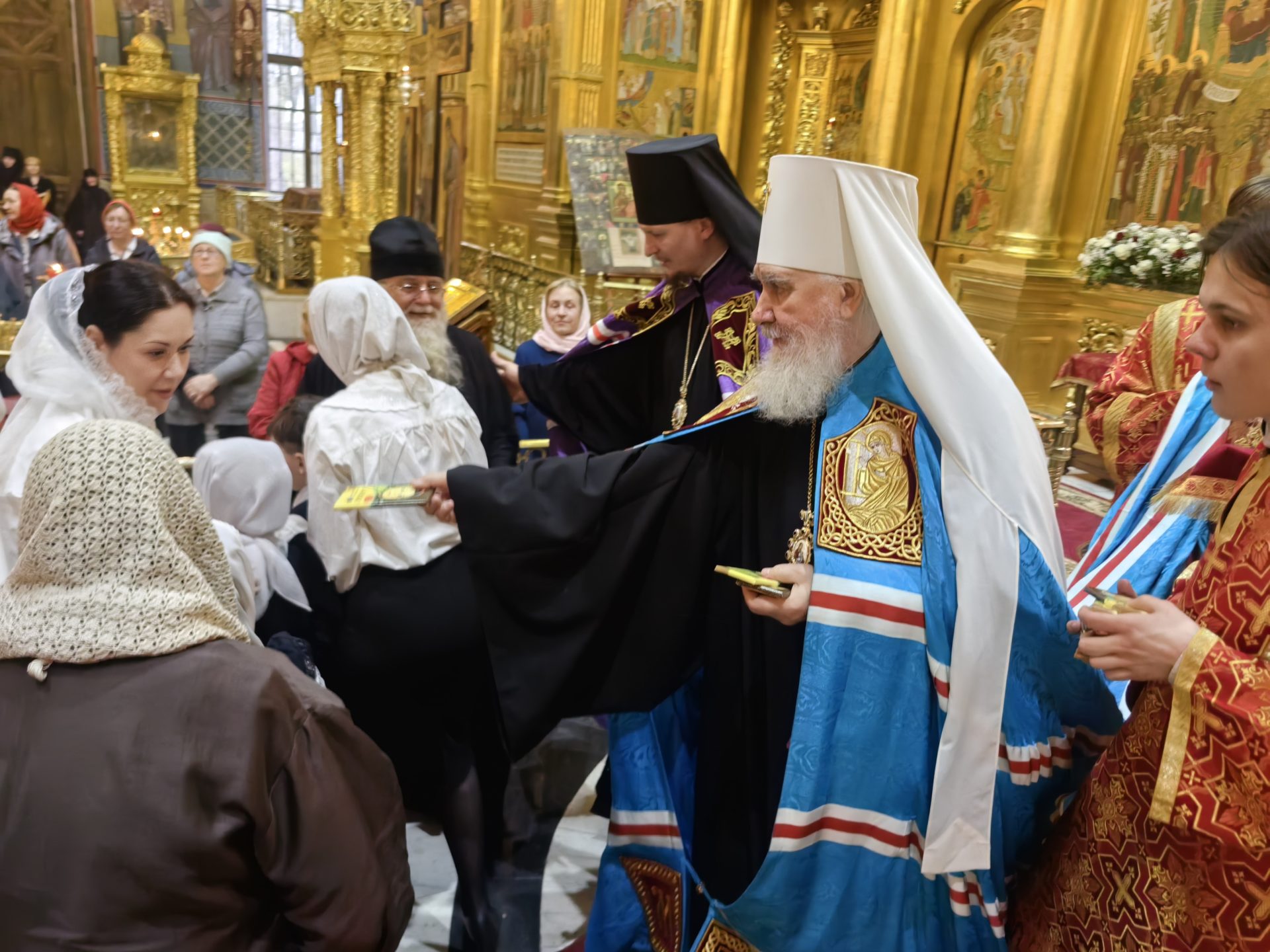 После окончания вечерни епископ Макарий с духовенством епархии поздравил митрополита Климента с праздником Пасхи Христовой и преподнес владыке букет цветов.