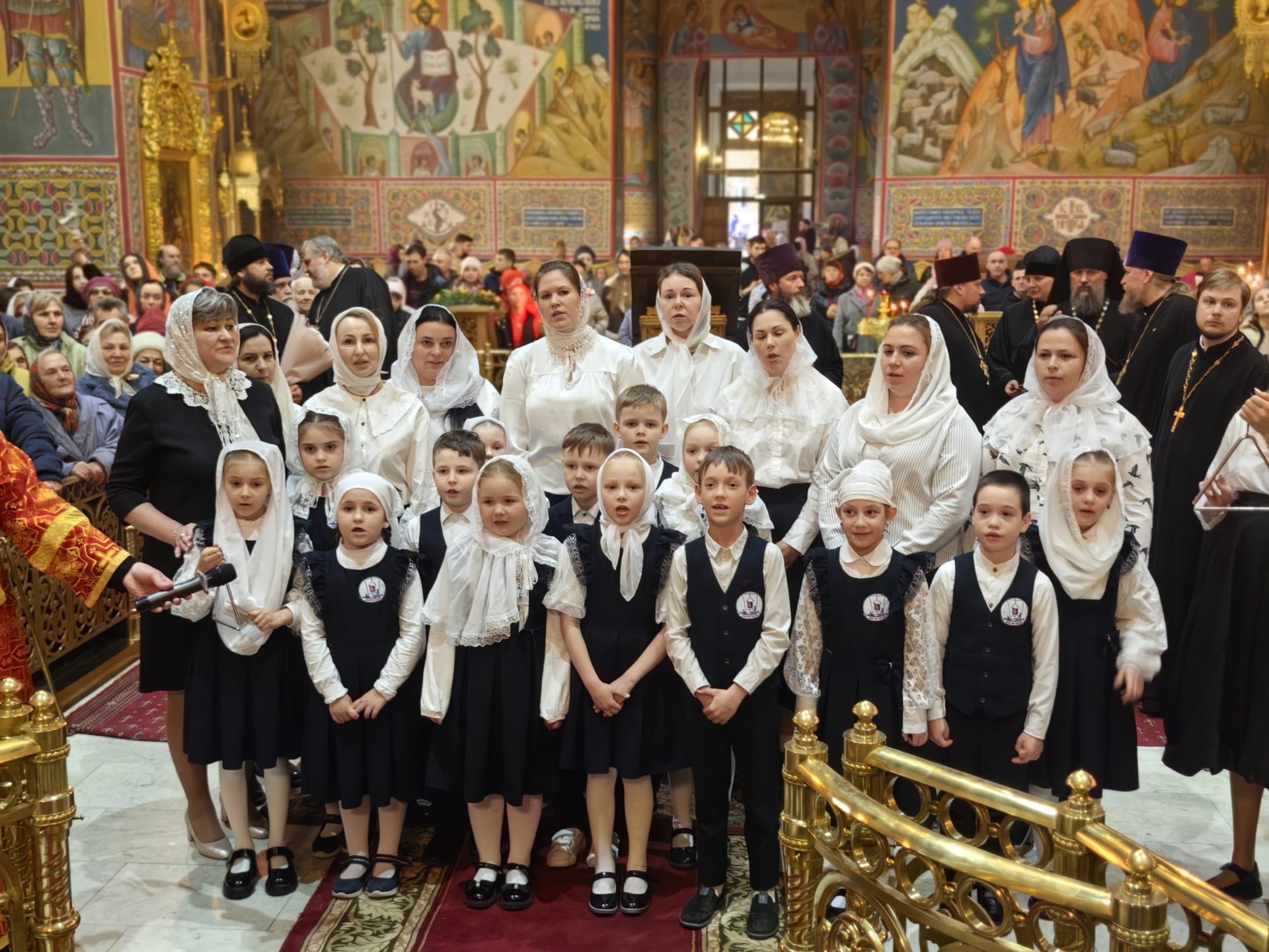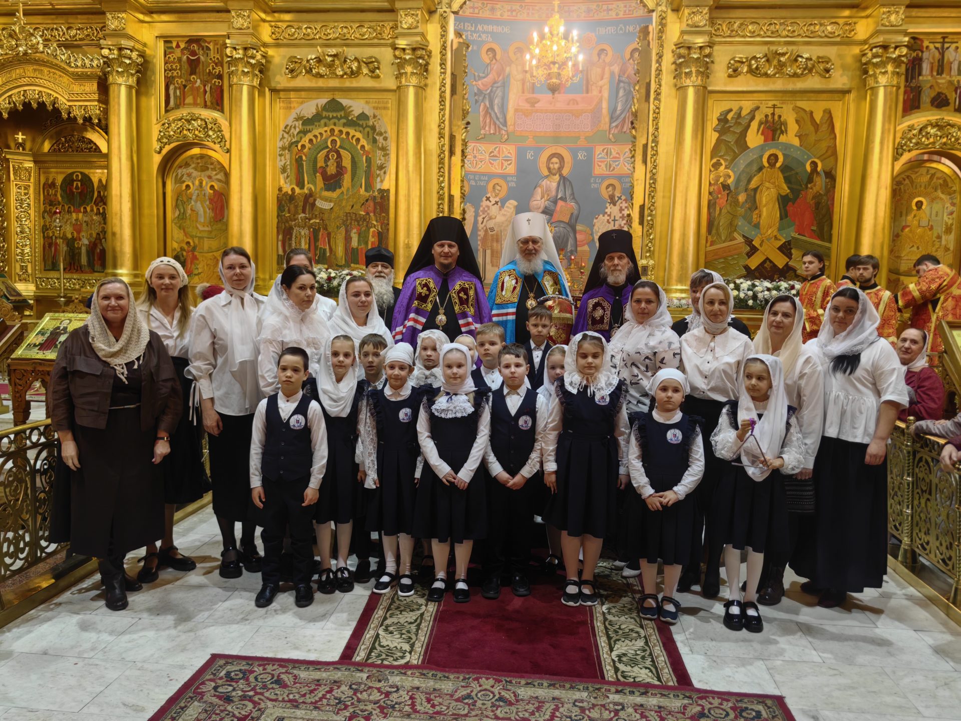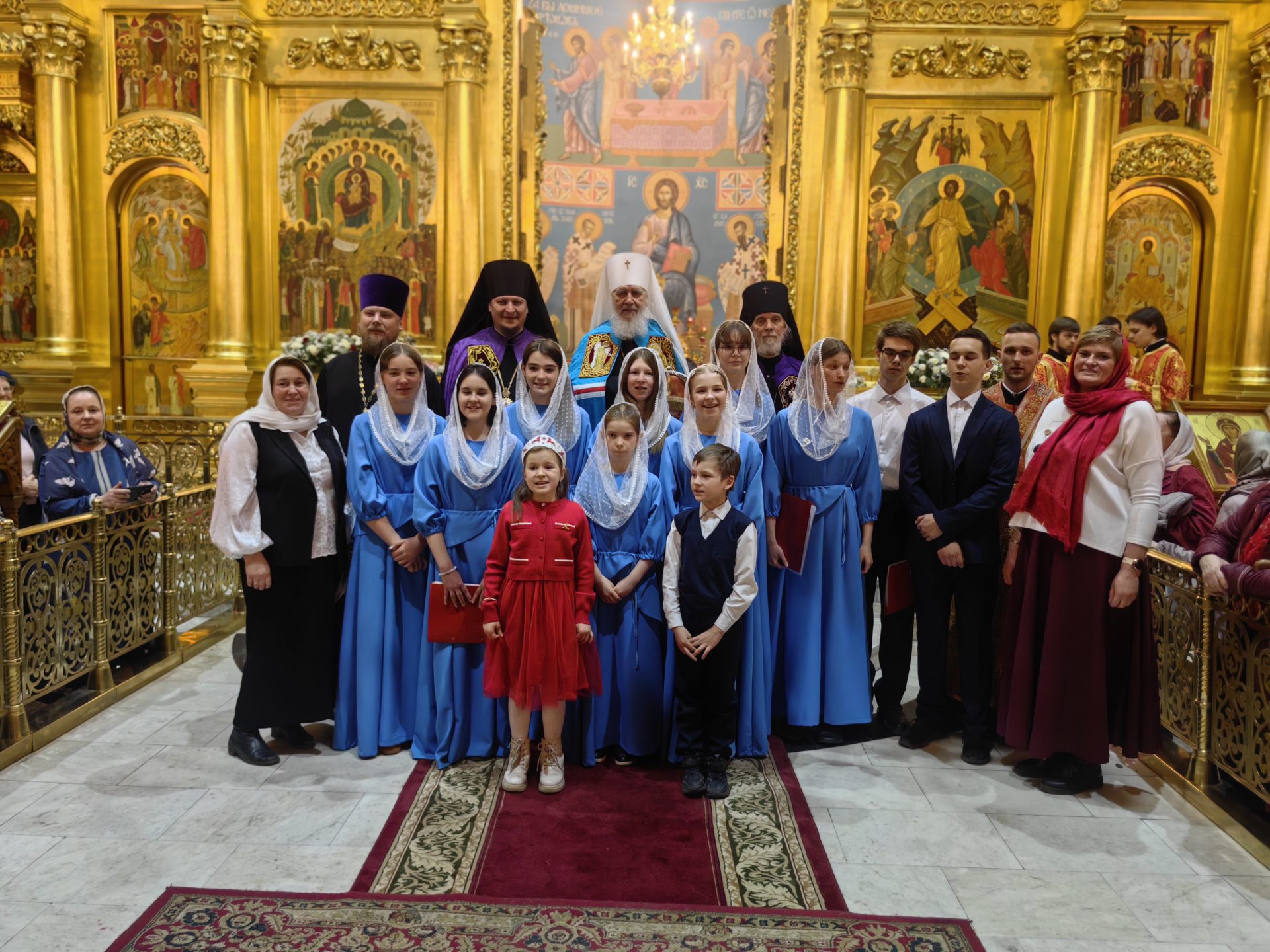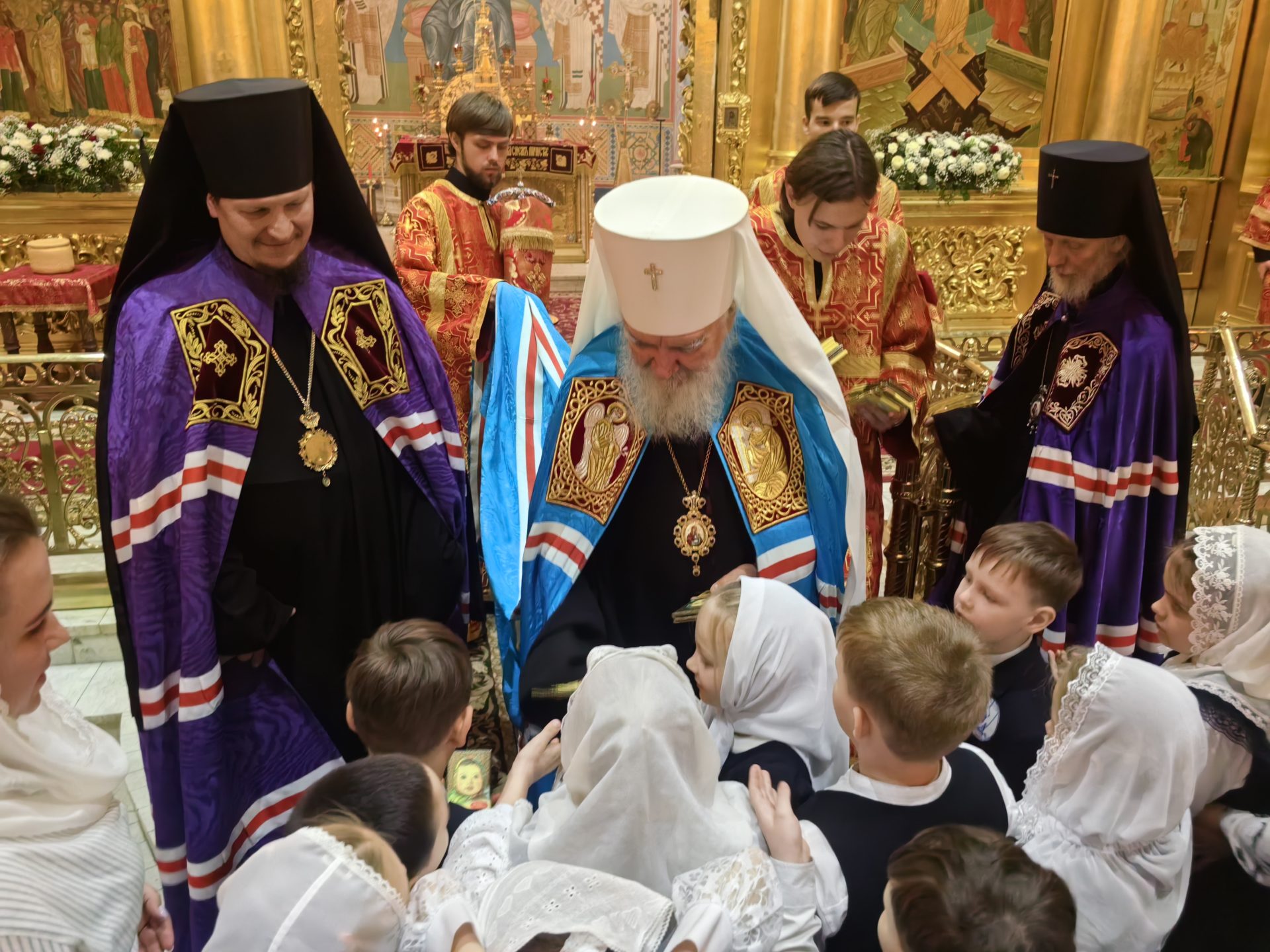 После поздравления духовенства архиереев Калужской митрополии поздравили воспитанники Калужской и Козельской православных гимназий.
