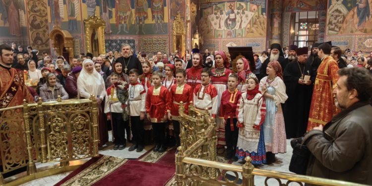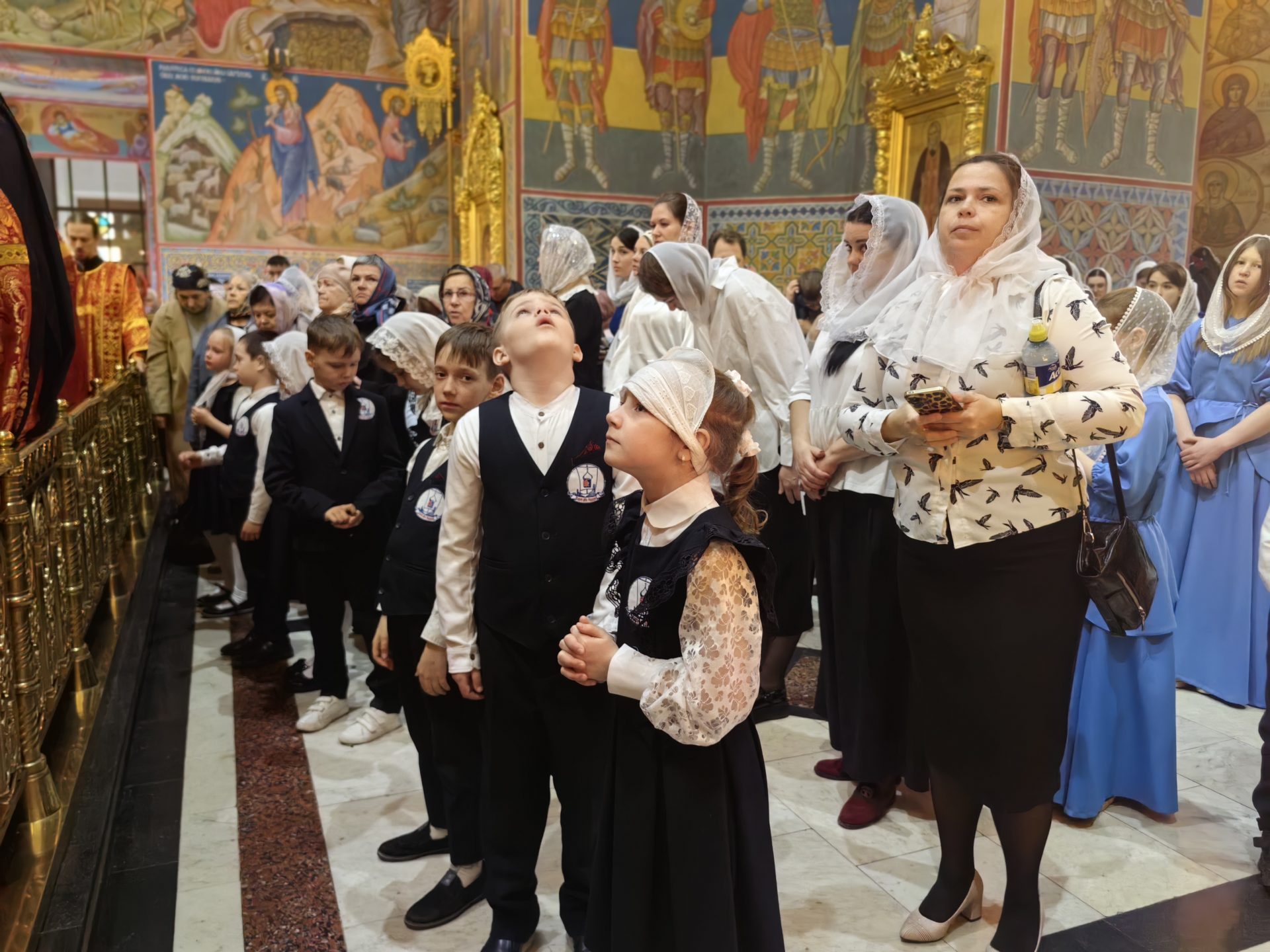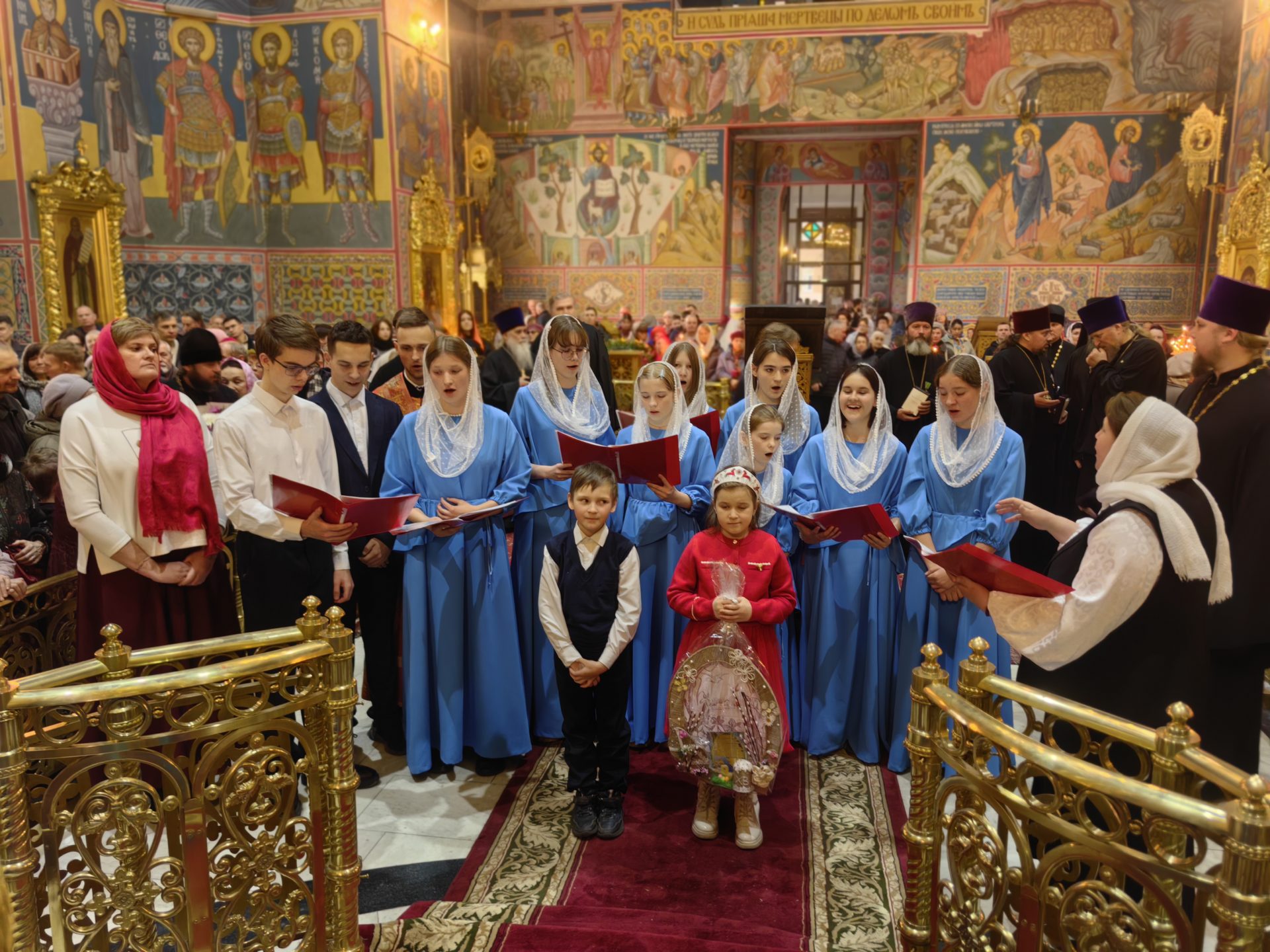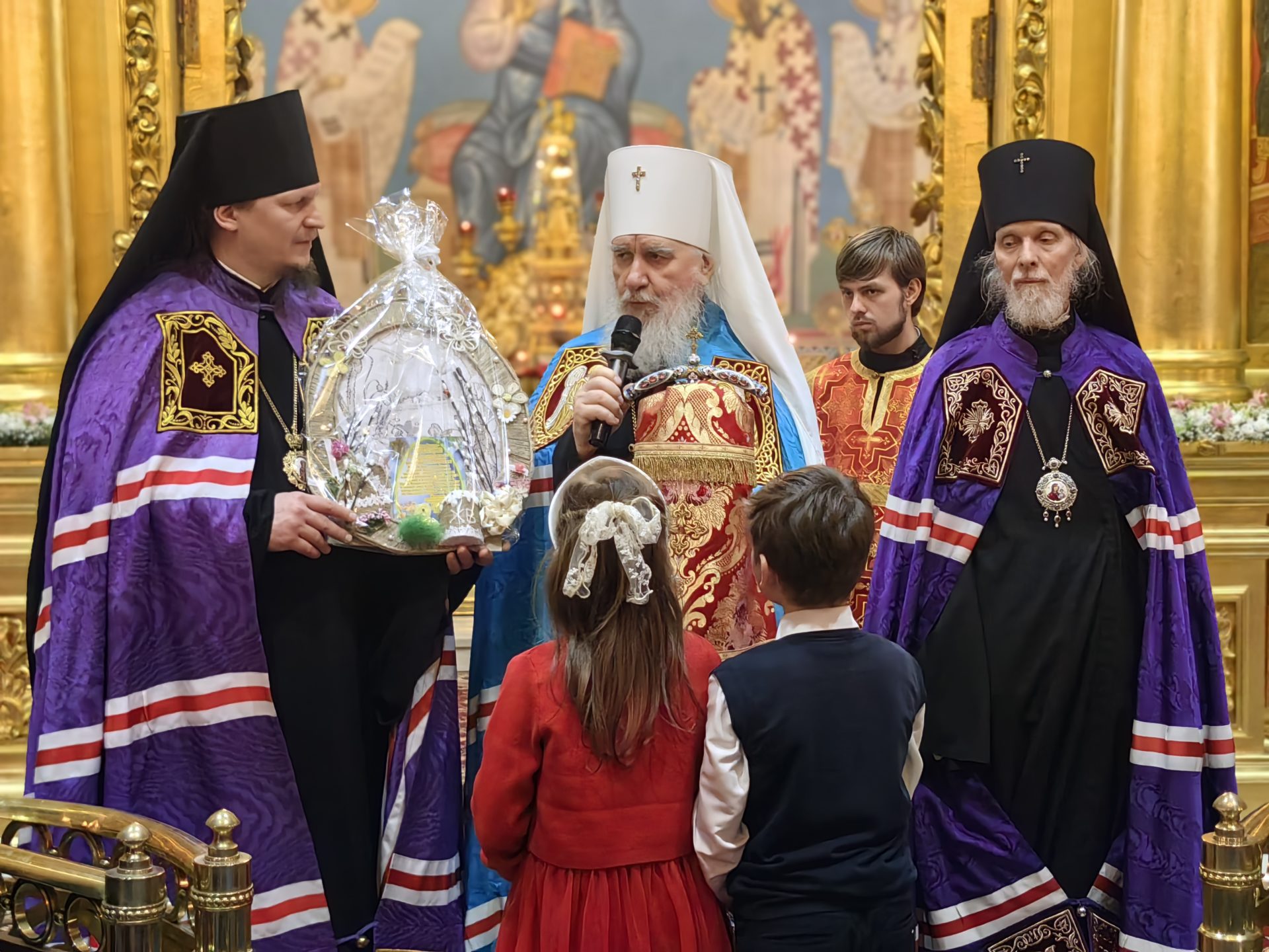 После поздравления духовенства архиереев Калужской митрополии поздравили воспитанники Калужской и Козельской православных гимназий.