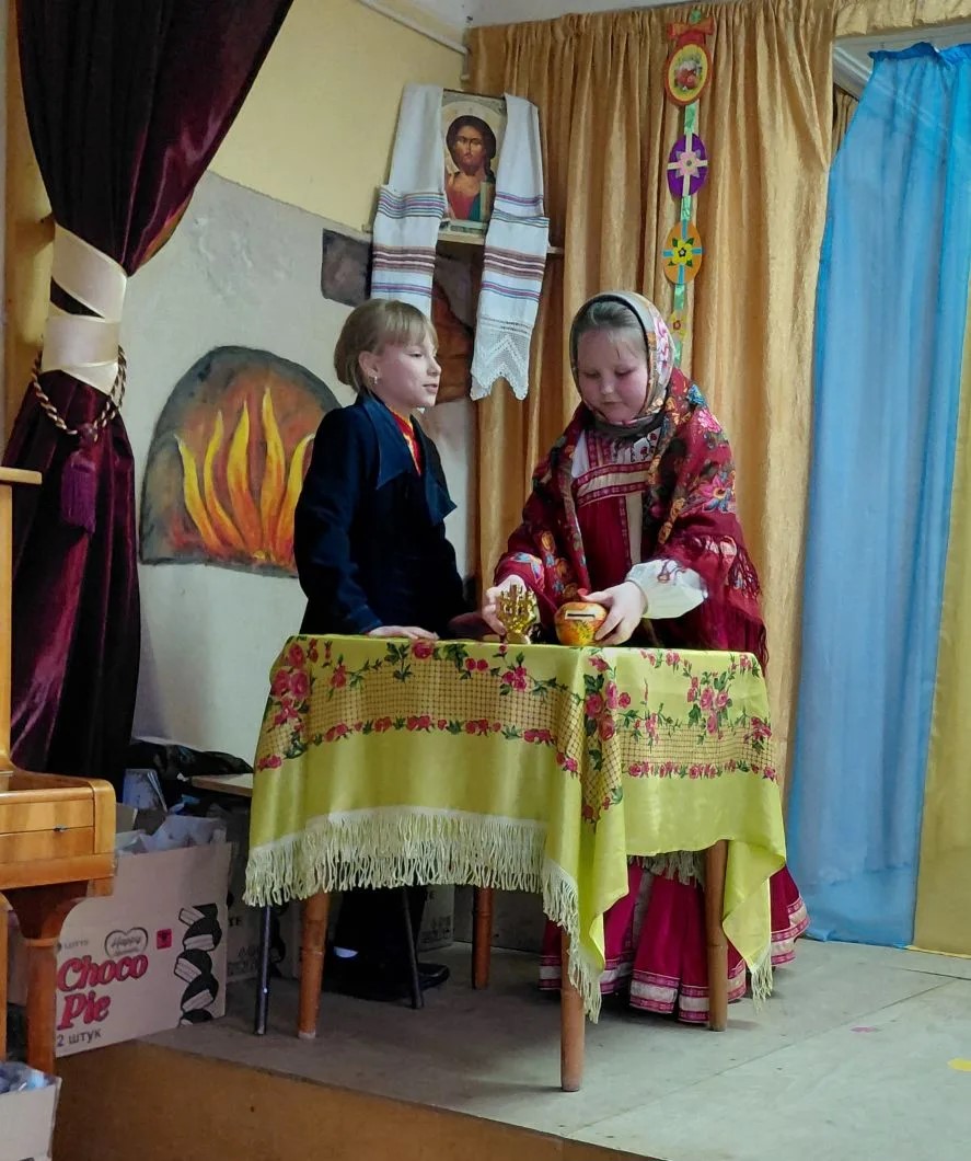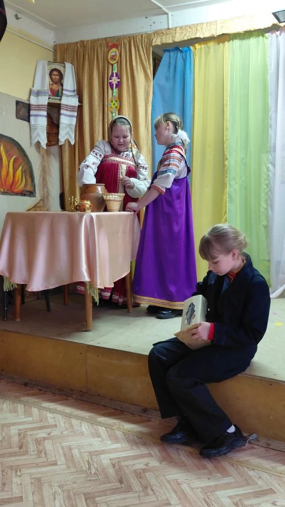 На Светлой седмице Православный детский центр «Возрождение» г. Козельск собрал гостей в своем уютном зале и подарил зрителям пасхальную театральную постановку. Воспитанники театральной студии «Образ» показали, как традиции празднования Пасхи были одинаковыми как в бедных, так и в богатых домах. И радость от ожидания Воскресения Христова переполняла души верующих.