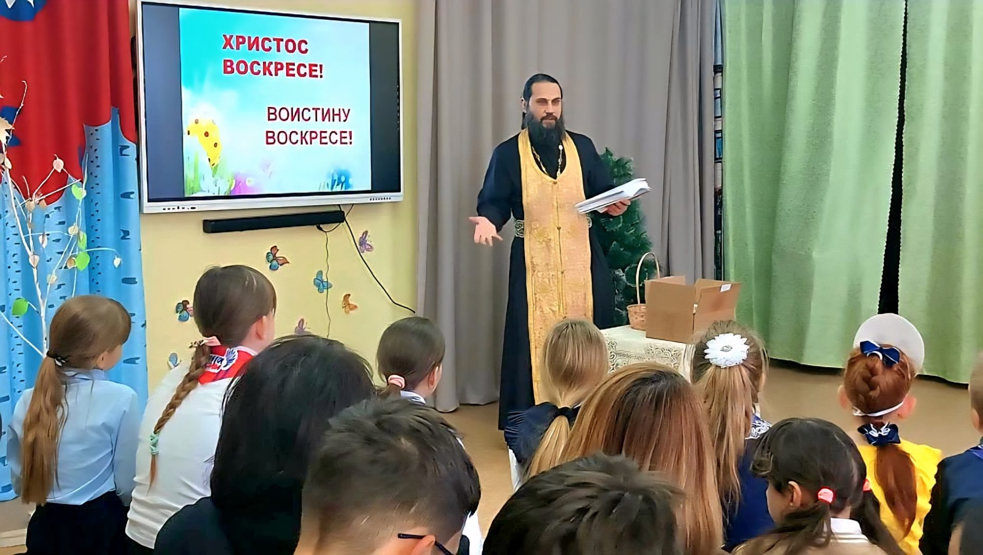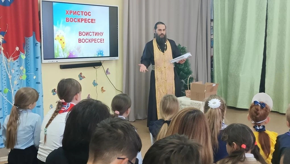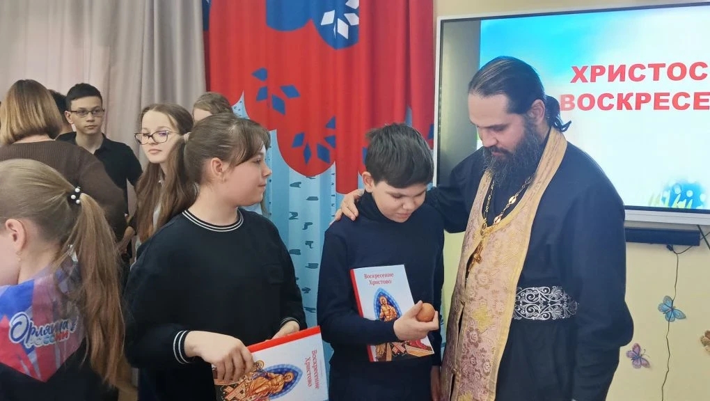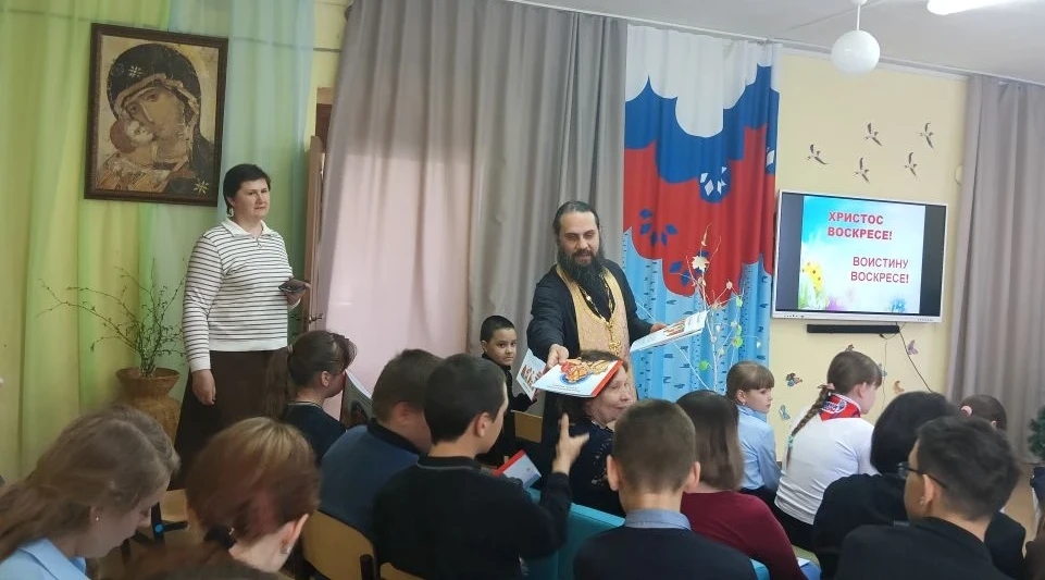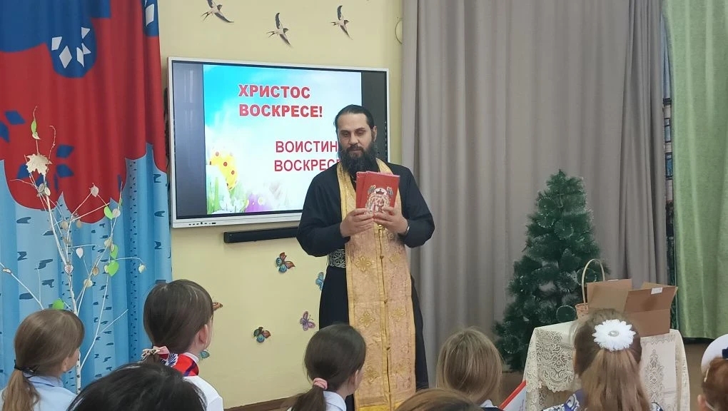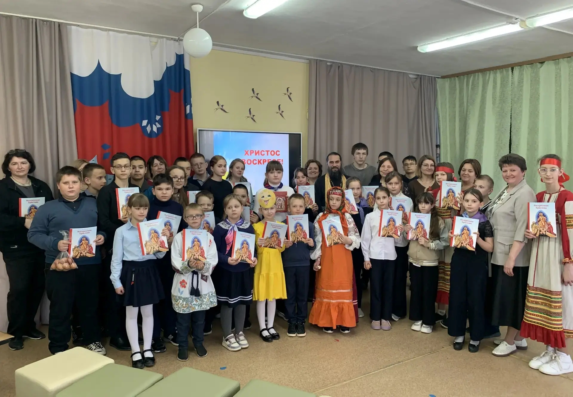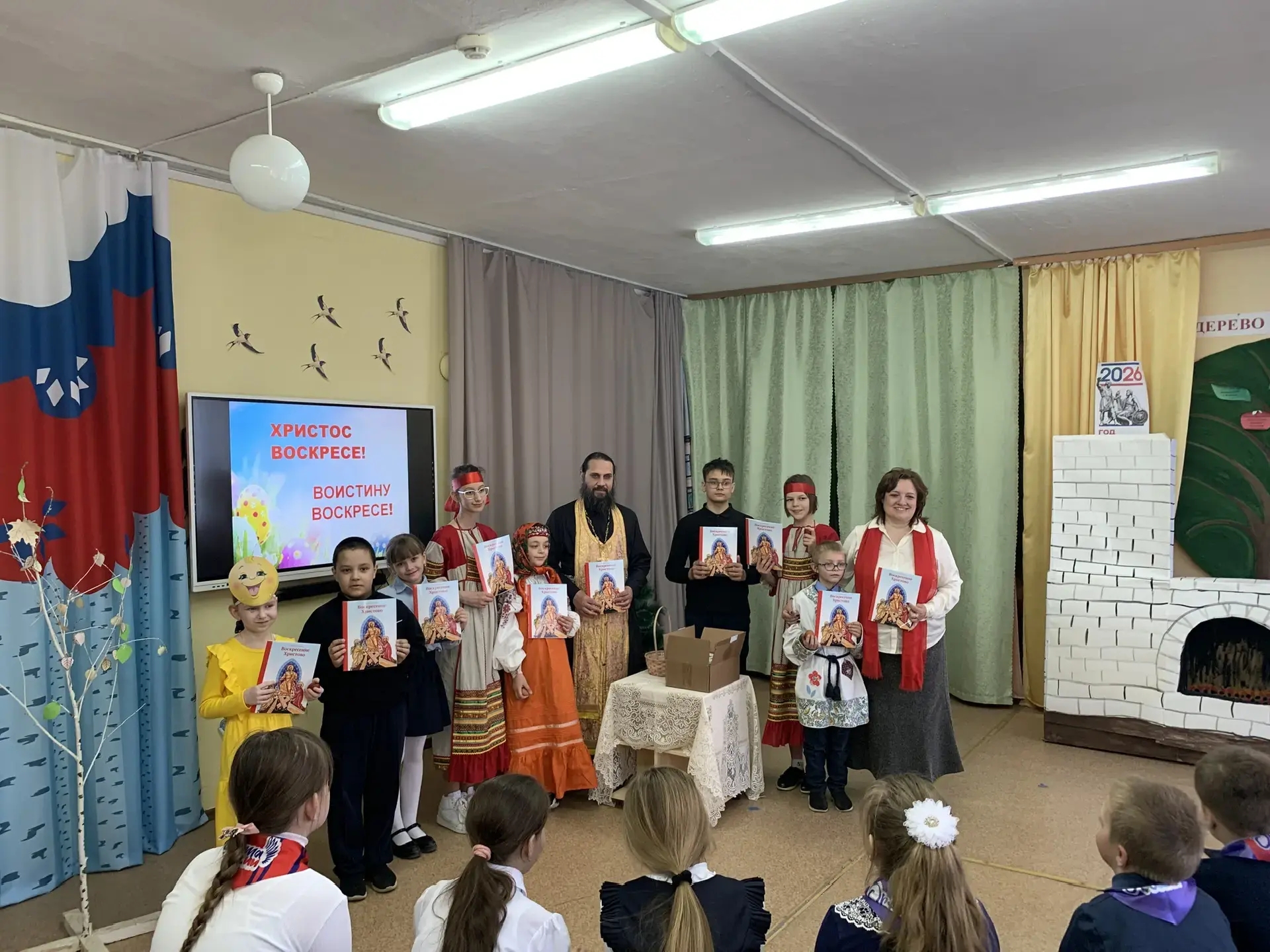 Иерей Максим Изопов поздравил всех с праздником, подарил детям книги «Воскресение Христово» и детский молитвослов.