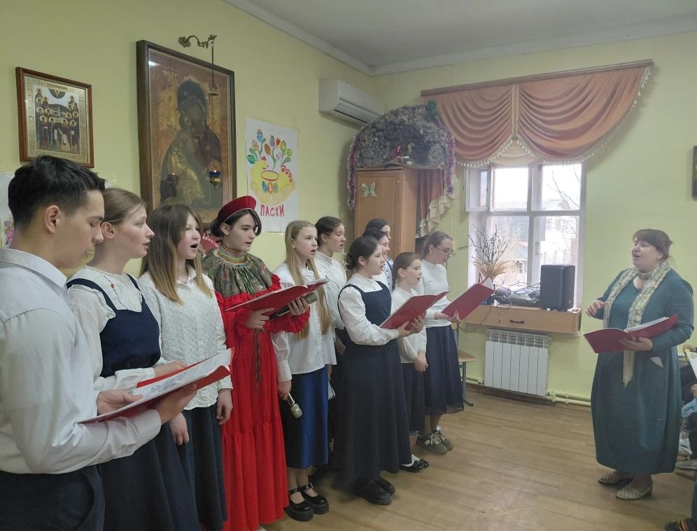 Пасхальные песни — ученики исполнили духовные песнопения и народные песни, посвящённые Воскресению Христову. Мелодии наполнили зал светом и радостью, создавая понастоящему праздничную атмосферу.