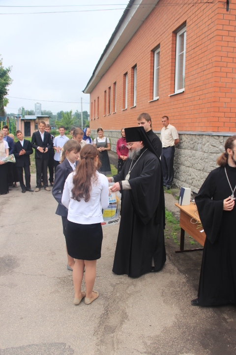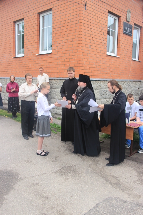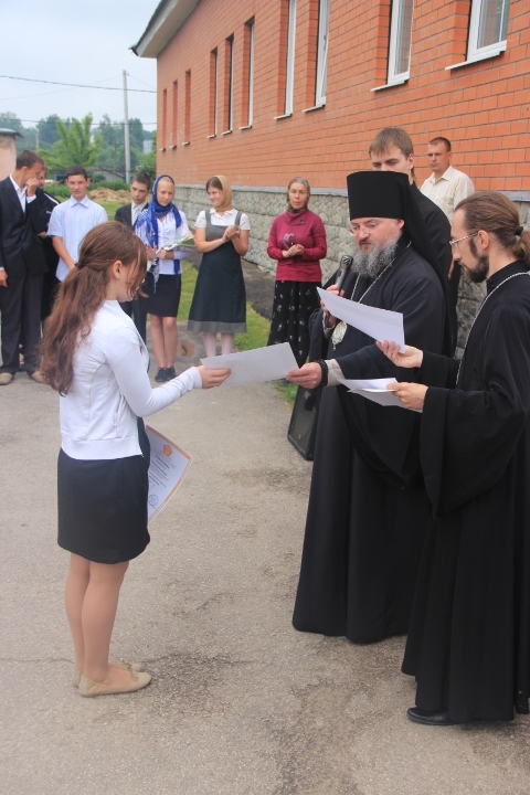 Затем у стен школы состоялась праздничная линейка. Владыка поздравил учащихся с окончанием учебного года и пожелал с пользой для души и тела провести летние каникулы, а затем вручил благодарственные письма и дипломы преподавателям и учащимся отличившимся в прошедшем учебном году, наиболее успешным ученикам были вручены ценные подарки.