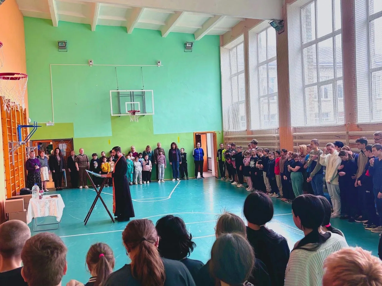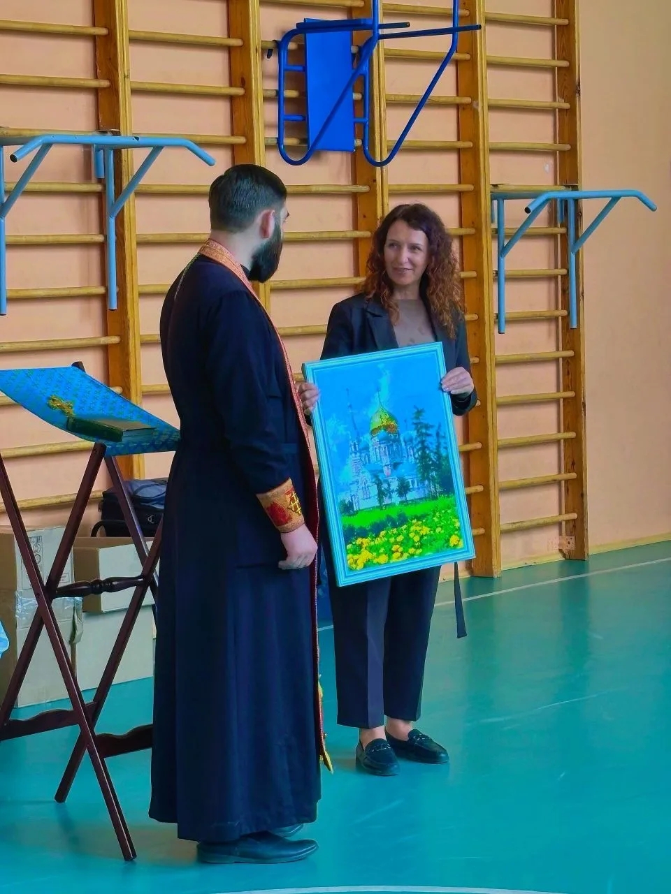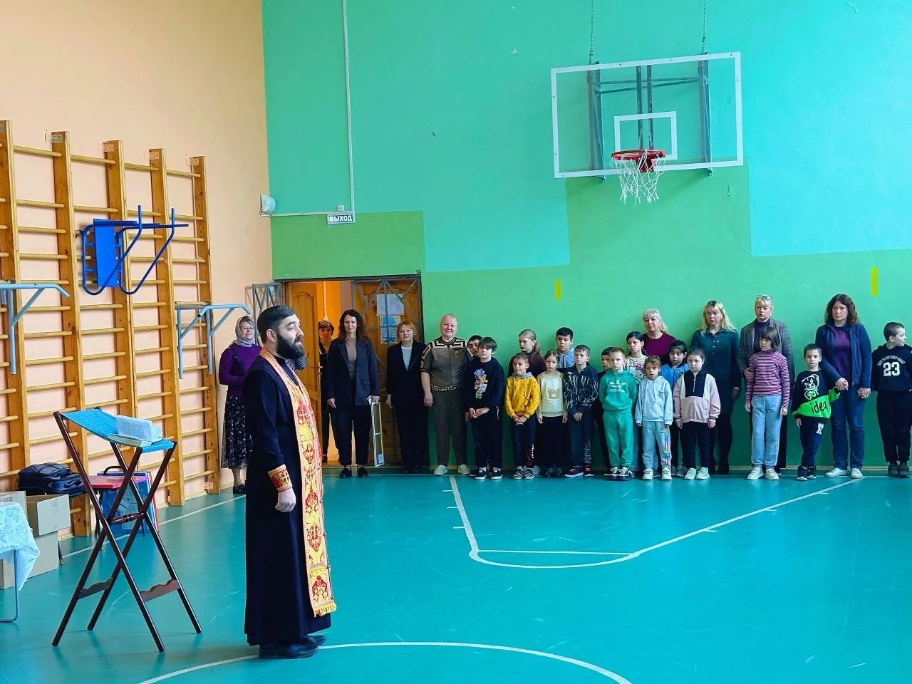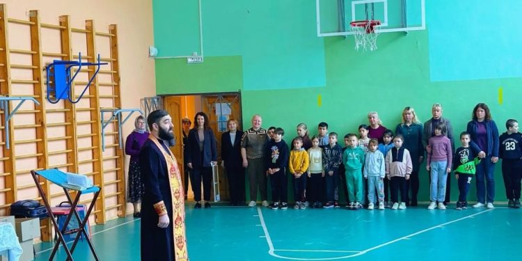24 апреля 2026 года, по доброй традиции, клирик Казанского собора города Людиново иерей Владислав Скоркин и педагог ВШ «Светоч» Ольга Пилипченко посетили Людиновскую школу – интернат. Здесь священник отслужил молебен, на котором присутствовали воспитанники школы — интерната и их наставники. После молебна он обратился ко всем присутствующим с напутственным словом, рассказал про праздник Светлой Пасхи Христовой, про Светлую Пасхальную седмицу, про добро и милосердие, которое люди должны совершать по отношению друг к другу. Затем отец Владислав вручил воспитанникам и педагогам сладкие подарки от социальной службы Казанского собора (руководитель Елена Коношенко). Директор школы Ирина Евгеньевна Антохина поблагодарила гостей за встречу и подарила на память Казанскому собору картину, которую воспитанники школы — интерната изготовили своими руками.