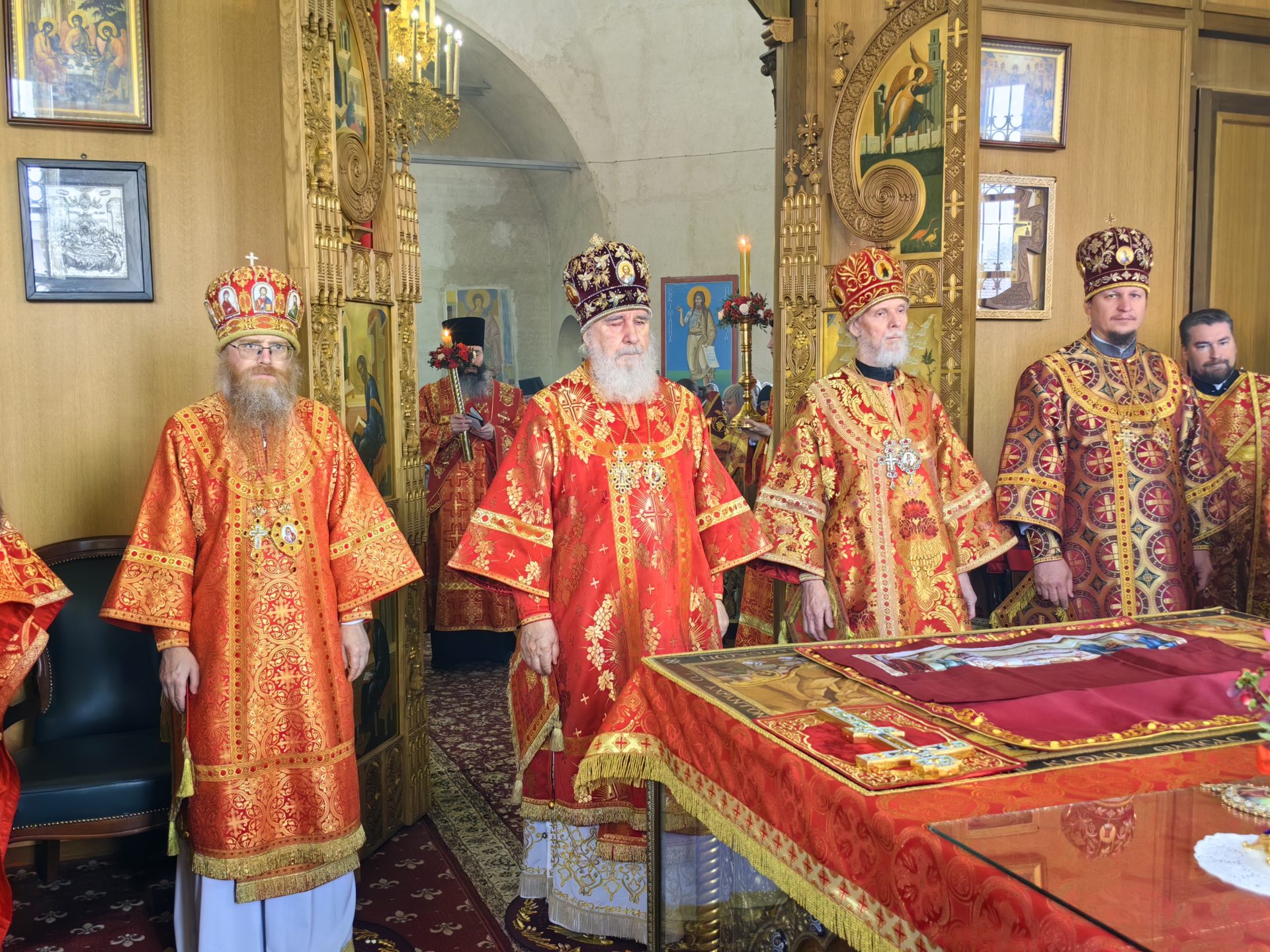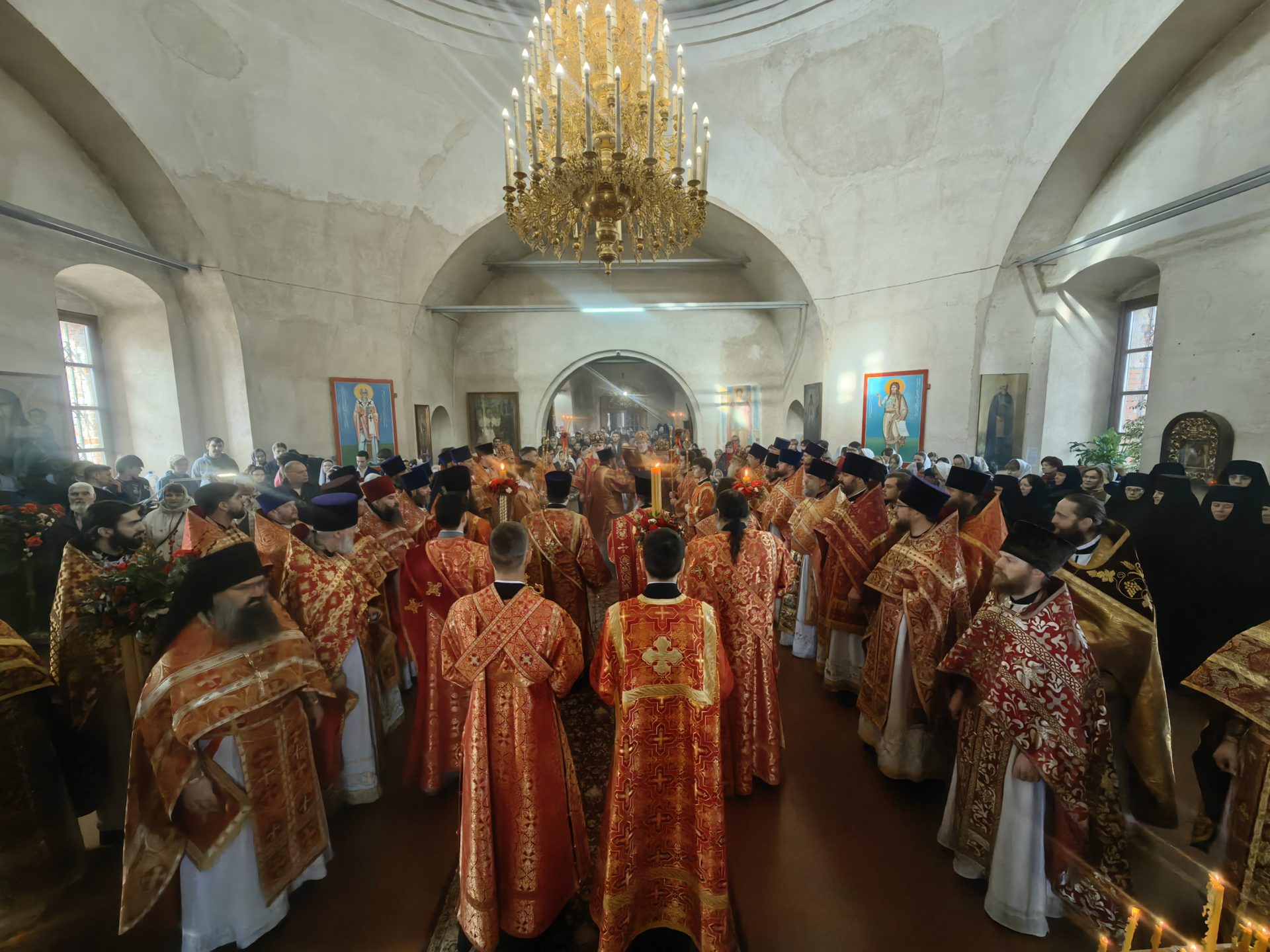 Архипастырям сослужили священнослужители Калужской митрополии и Оптиной пустыни, всего более 60 человек.