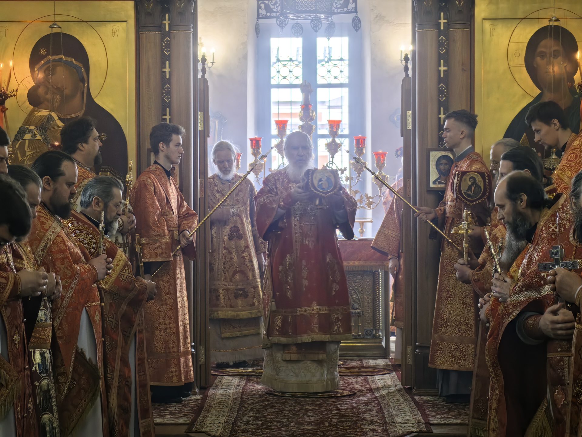 Божественную Литургию в Успенском кафедральном соборе возглавили все архипастыри Калужской земли — глава Калужской митрополии, митрополит Калужский и Боровский Климент, архиепископ Песоченский и Юхновский Максимилиан, наместник Оптиной пустыни викарий Святейшего Патриарха Московского и всея Руси епископ Можайский Иосиф и епископ Козельский и Людиновский Макарий.