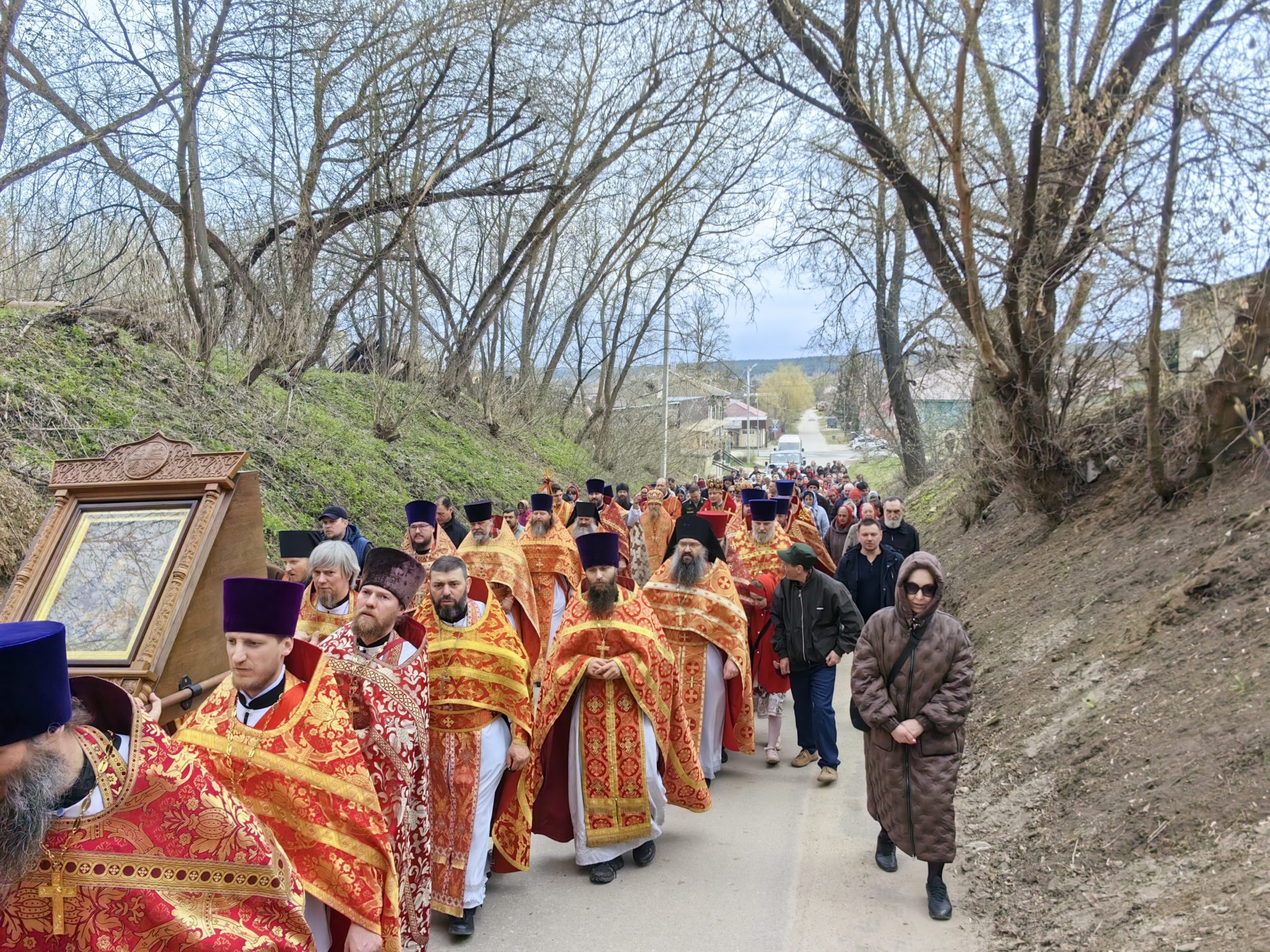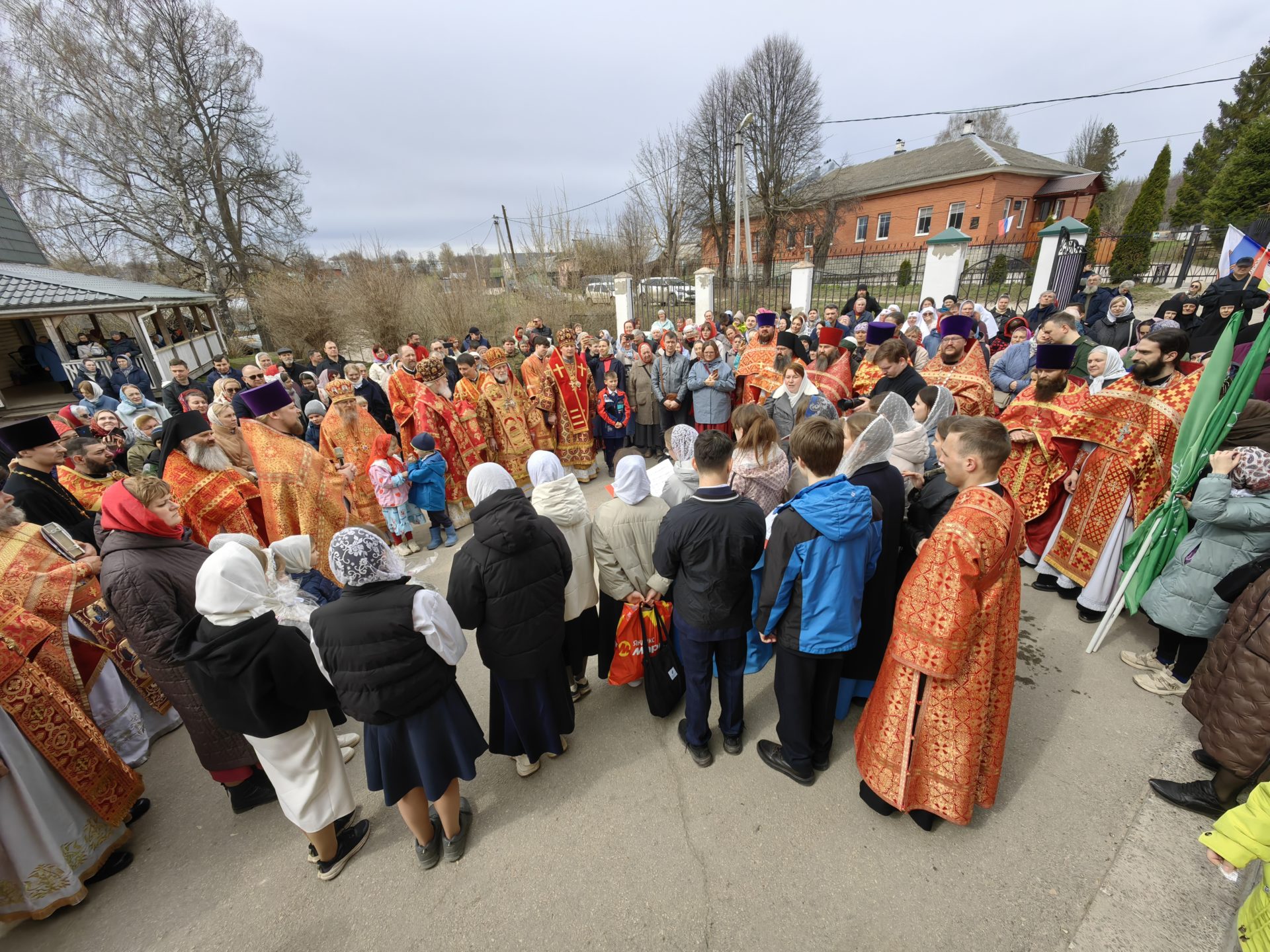 По пути были совершены остановки, прочитаны воскресные Евангелия и архипастыри окропили верующих святой водой.