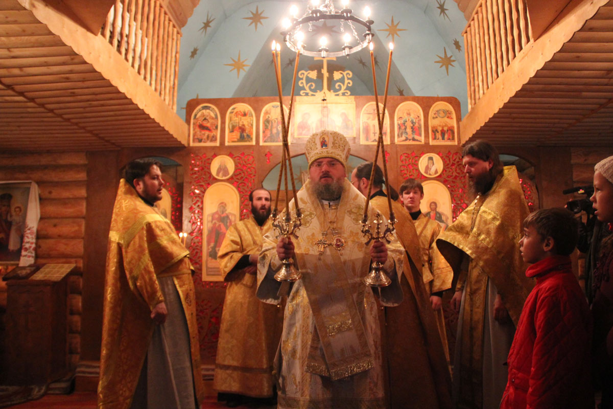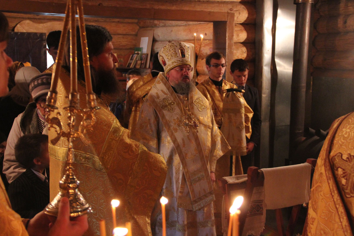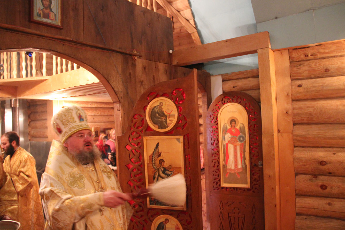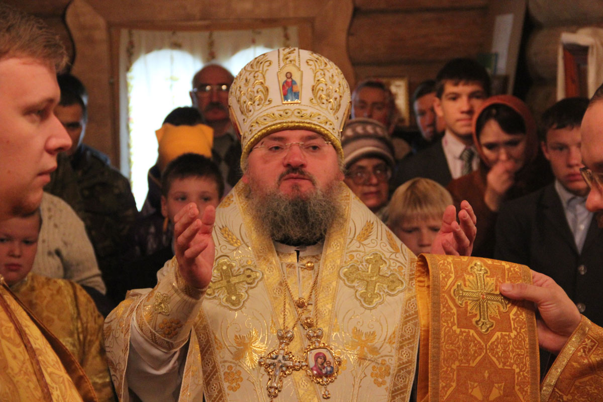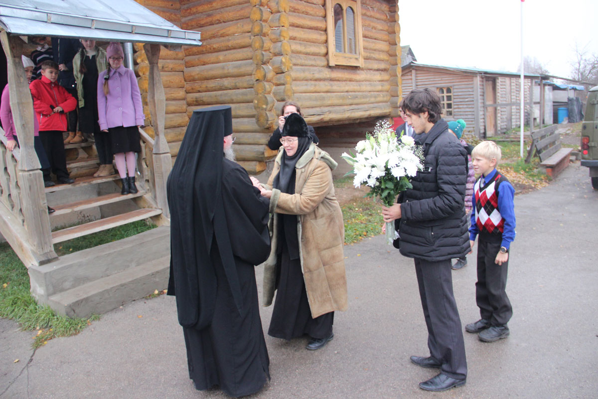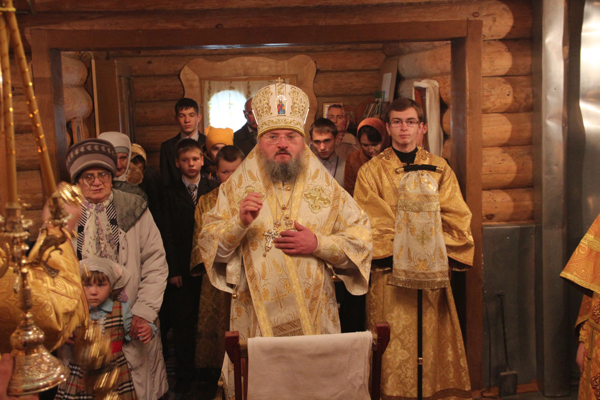 После отпуста литургии владыка обратился к богомольцам со словом назидания. В дар храму архипастырь передал образ Казанской Божией Матери, а всем молящимся были розданы издания Священного Писания Нового Завета.