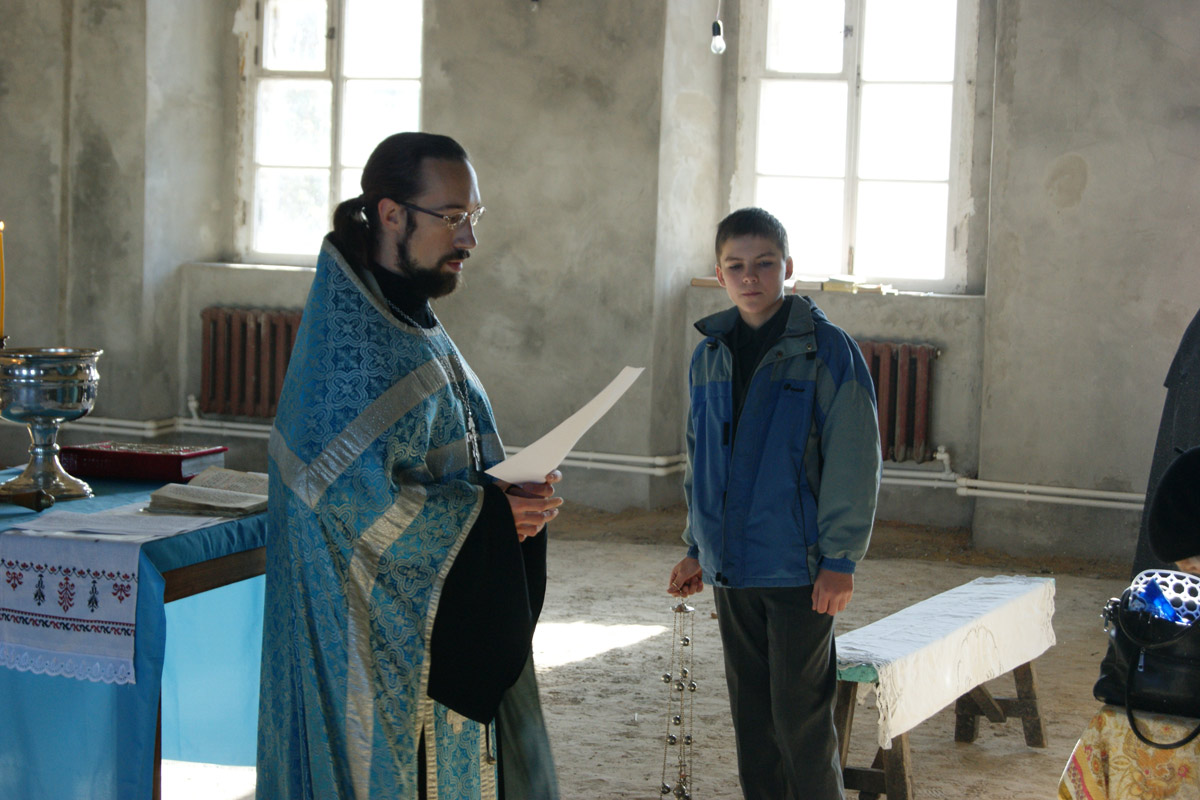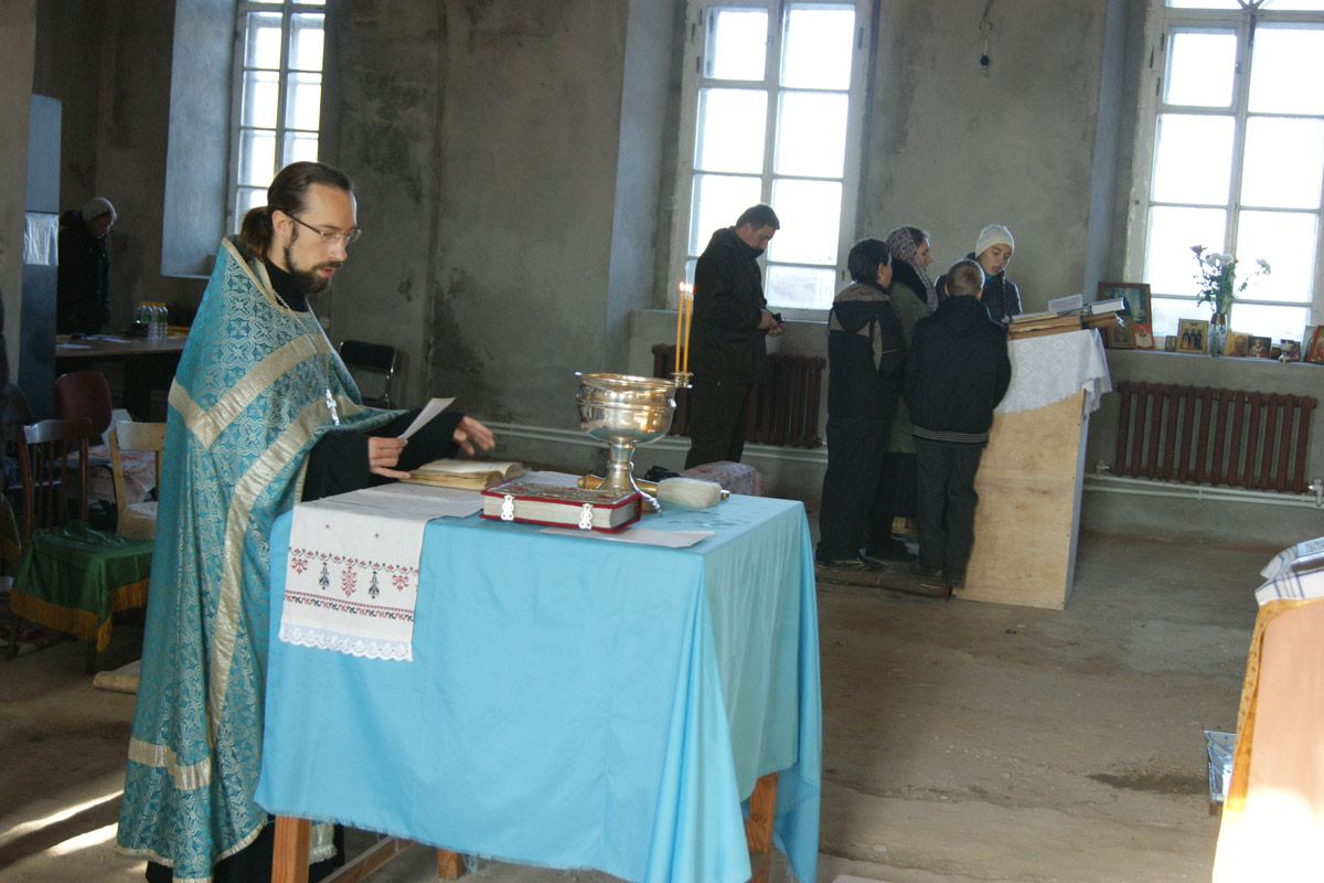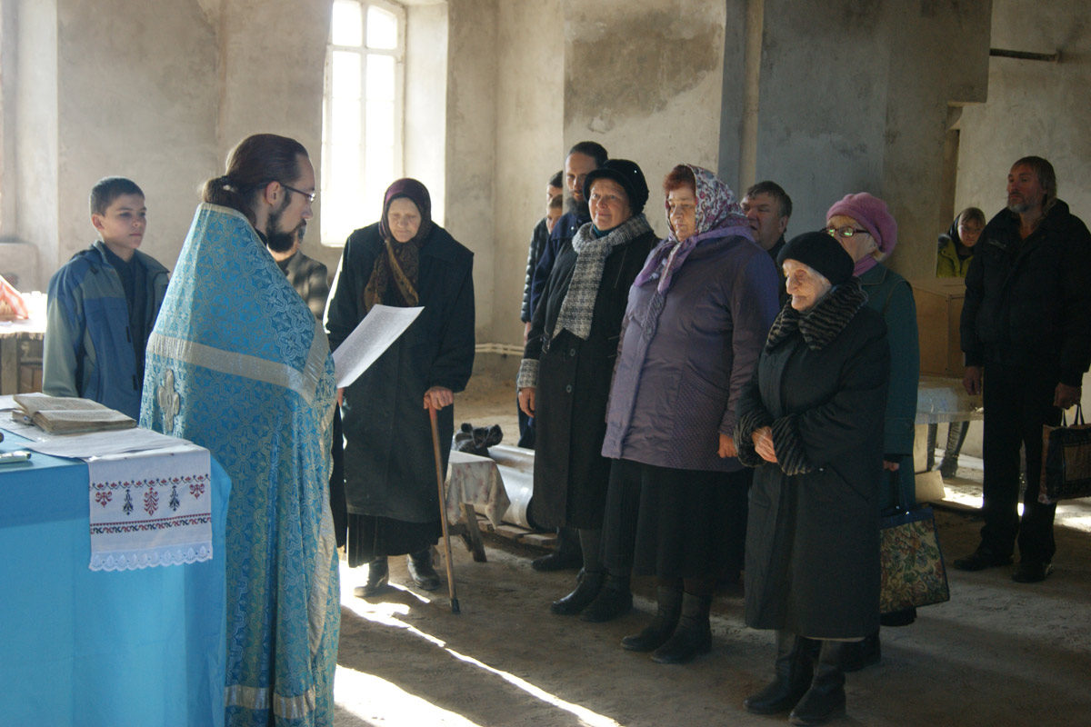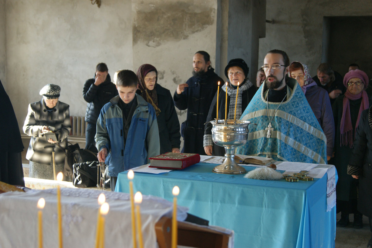 Богослужение возглавил иерей Антоний Лунин, директор Козельской Православной гимназии. Священнику помогал гимназический хор. Порядка тридцати прихожан, не считая гимназистов, пришли вознести ко Господу молитвы о скорейшем восстановлении поруганной и забытой святыни.