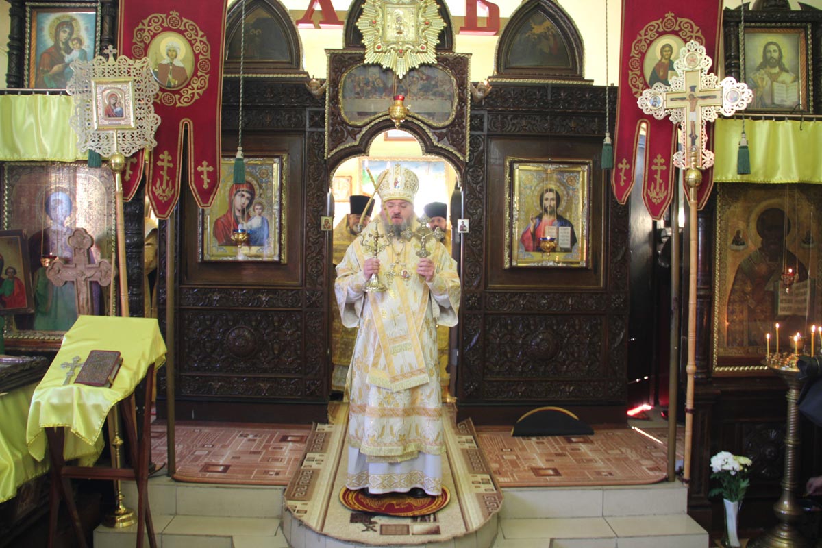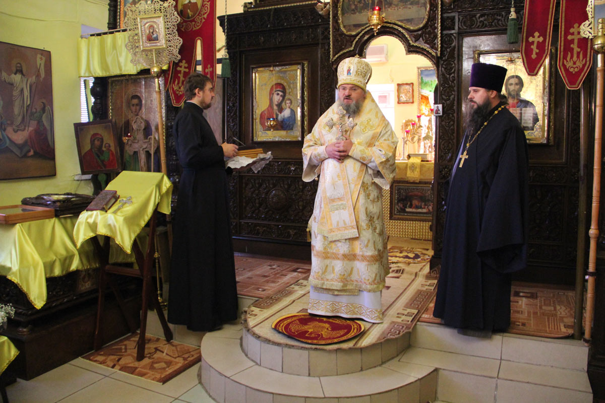 Архипастырю сослужили: протоиерей Михаил Карпенко – настоятель храма, протоиерей Дмитрий Губаль, протоиерей Василий Биляк – благочинный округа, протоиерей Алексий Жиганов- духовник епархии, иерей Антоний Хатунцев, иерей Артемий Арутюнян, иерей Алексий Сначев, иерей Александр Довганюк и диакон Евгений Ковригин.