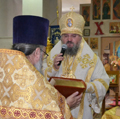 После праздничного Крестного хода, Владыка произнёс тёплые слова поздравления в адрес настоятеля Казанского собора — протоиерея Алексия Жиганова, всех служителей храма, прихожан, и всех жителей города Людиново.