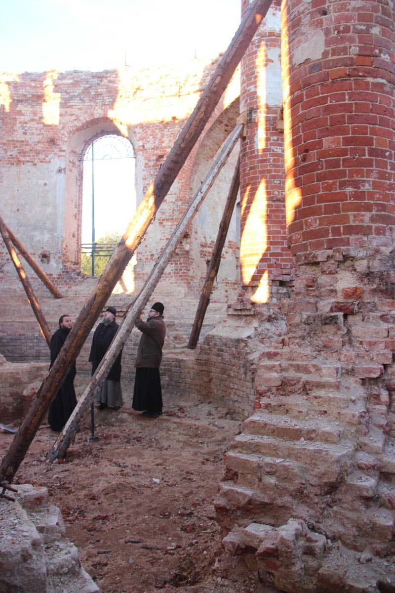 Настоятель прихода иерей Дмитрий Гаврилов познакомил архипастыря с жизнью прихода и ходом реставрационных работ.
