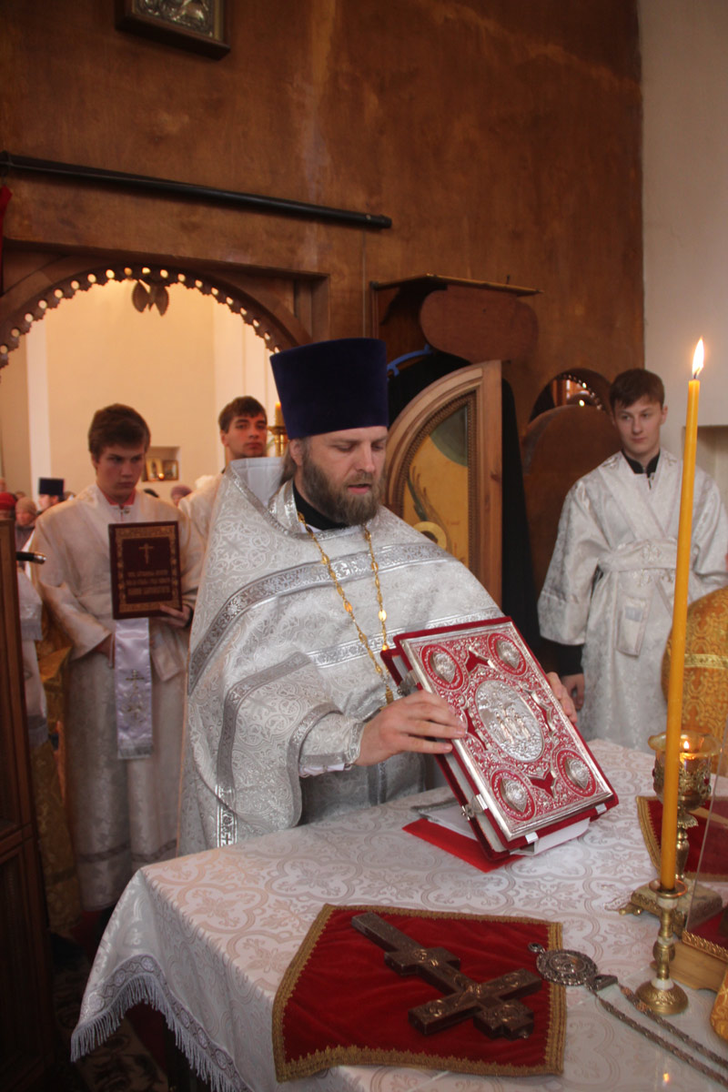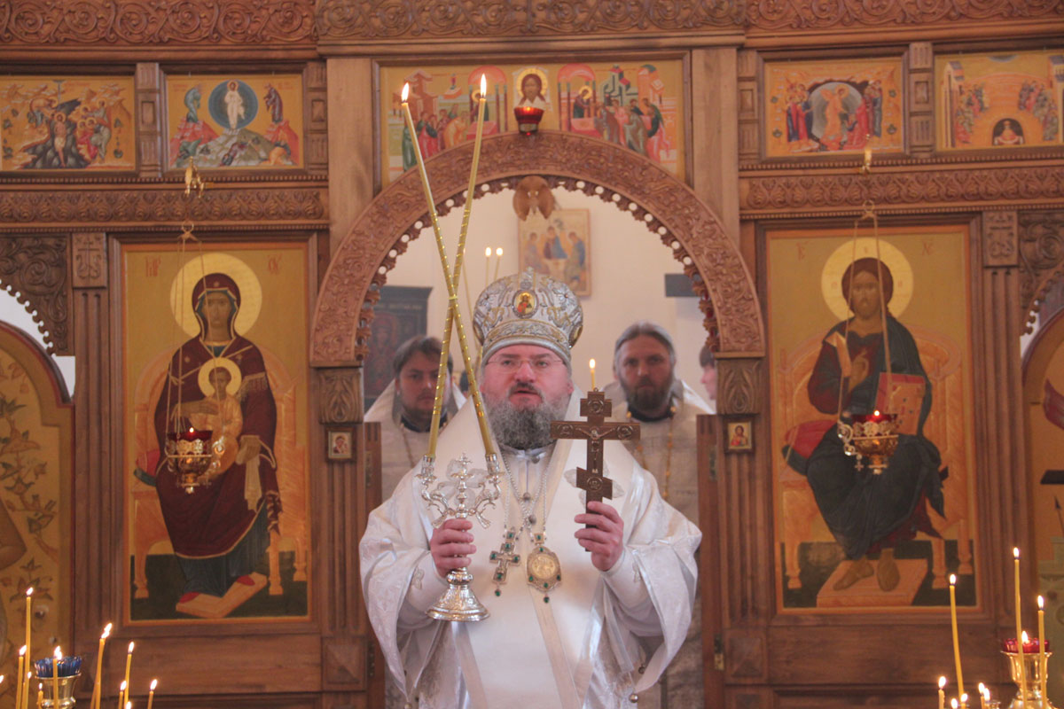 Епископ Козельский и Людиновский Никита совершил Божественную литургию в кладбищенском Свято-Воскресенском храме города Козельска. Архипастырю сослужили: настоятель храма иерей Николай Кузнецов, иерей Антоний Хатунцев и диакон Евгений Ковригин.