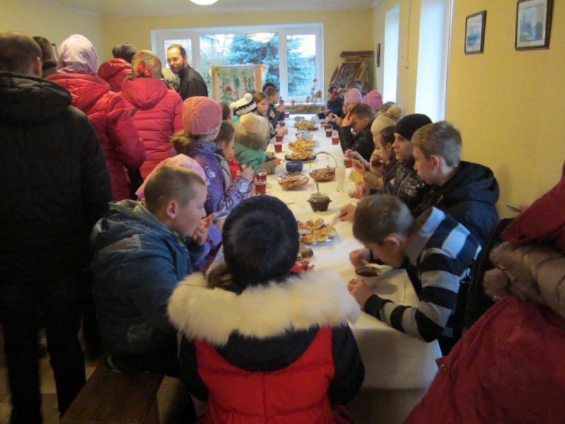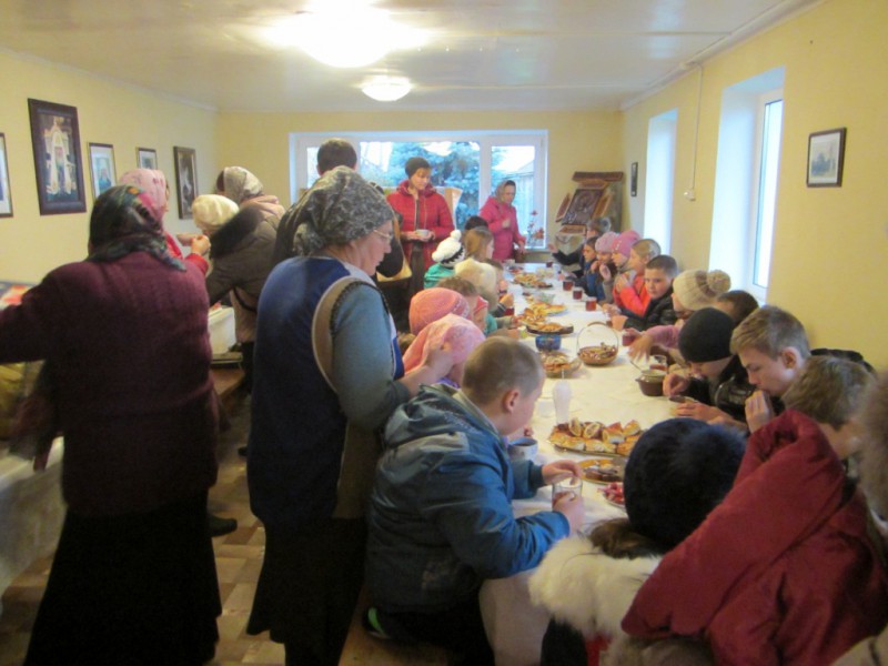 Затем гости из Волова встретились с настоятелем храма — протоиереем Леонтием Никифоровым, преподавшим им свое благословение. После ознакомительной экскурсии все проследовали в Воскресную приходскую школу, где был организован горячий чай с выпечкой.