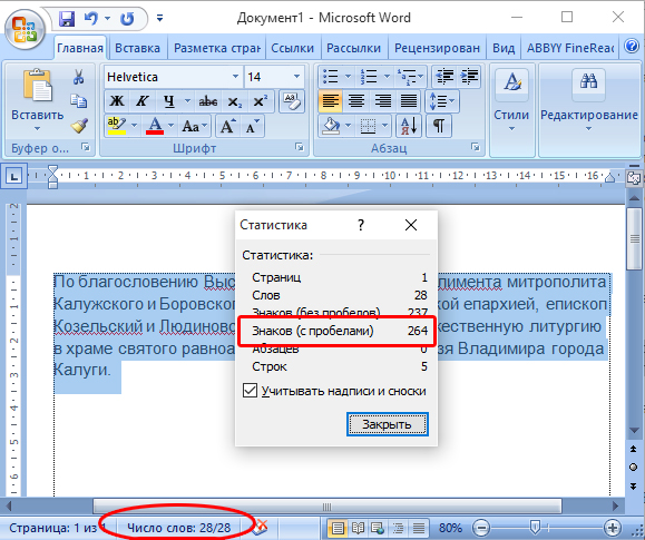 Как посчитать количество знаков в программе MS Word