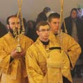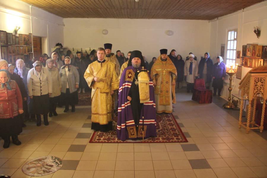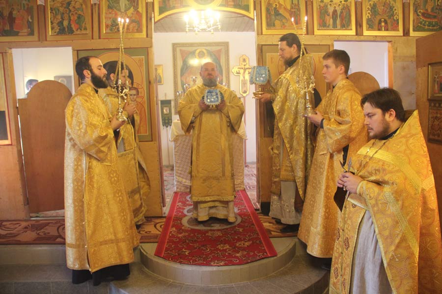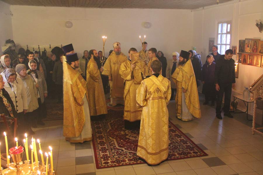 Архипастырю сослужили: благочинный округа протоиерей Алексий Казаков, настоятель храма протоиерей Александр Вейс, иерей Антоний Хатунцев и диакон Евгений Ковригин.
