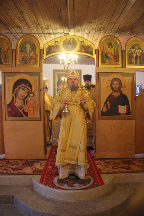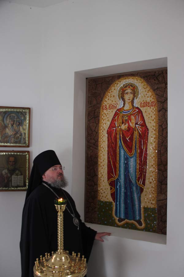 Завершив богослужение, архипастырь осмотрел устроенную в первом этаже храмовой звонницы часовню в честь святой великомученицы Варвары.