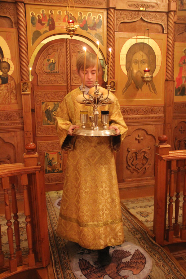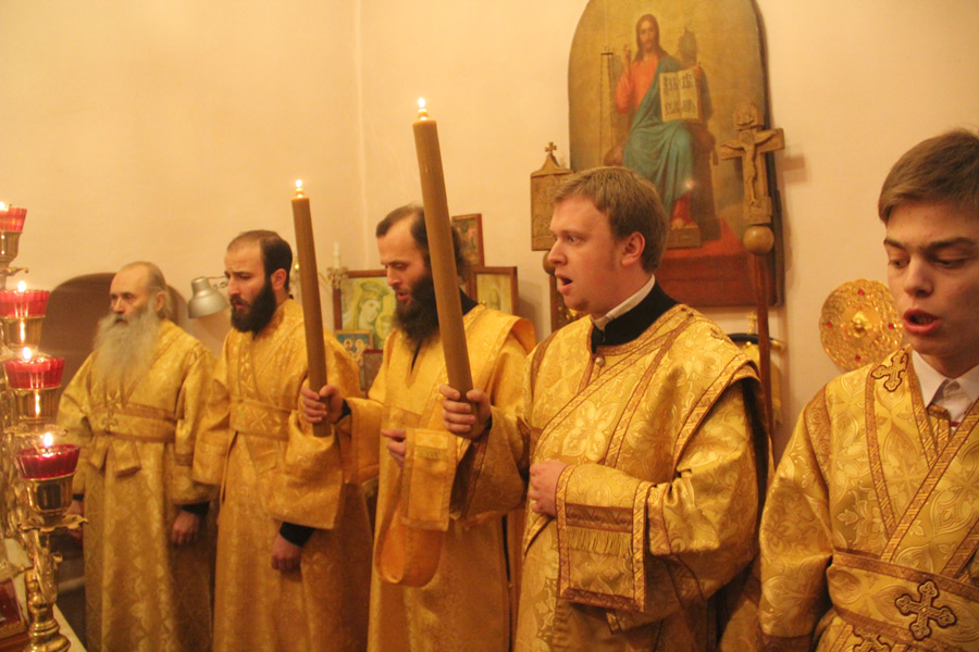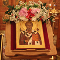 Архипастырю сослужили: настоятель храма, духовник епархии — митрофорный протоиерей Валерий Клинов, иерей Антоний Хатунцев, диакон Евгений Ковригин и диакон Сергий Дрозд. За праздничной утреней было совершено акафистное пение святому Мирликийскому чудотворцу. В завершении богослужения владыка обратился к богомольцам с архипастырским словом.