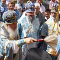 После пения величания Царице Небесной митрополит поздравил духовенство и богомольцев с праздником и произнес проповедь. Затем воспитанники духовно-просветительского центра действующего при храме и творческие коллективы Малоярославца выступили пред гостями праздника, пропев казачьи и народные песни. Владыка Климент сердечно поблагодарил всех выступающих за прекрасное представление и преподал всем архипастырское благословение.