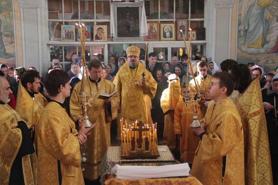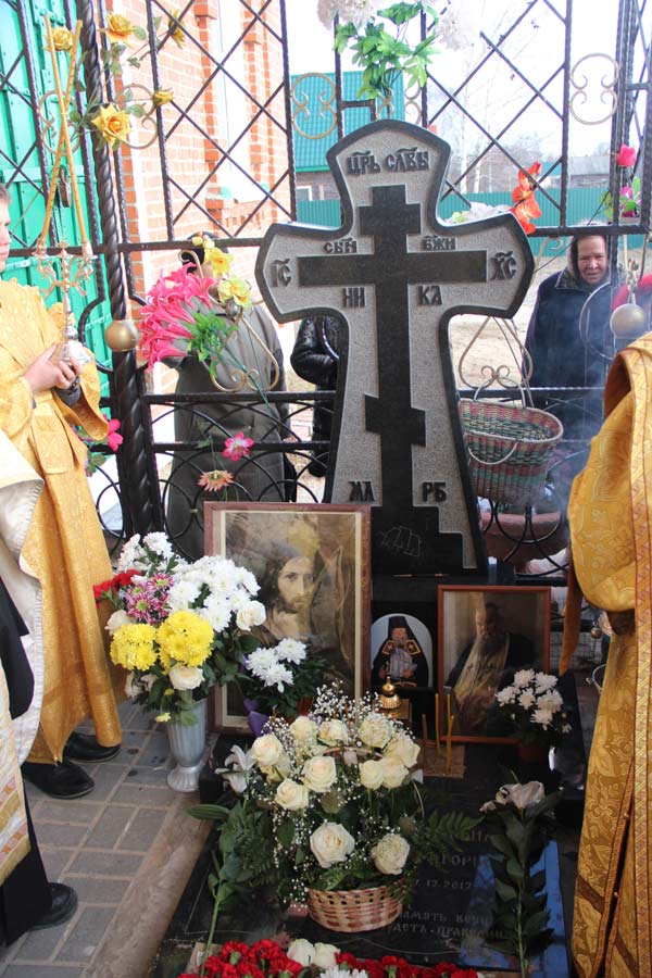 После отпуста литургии священнослужители совершили панихиду и заупокойную литию на могиле приснопоминаемого архимандрита Серафима (Олиферчука), многолетнего настоятеля и строителя храма, скончавшегося в этот день три года назад.