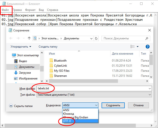 Для того чтобы подписать фотографии, необходимо создать текстовом редакторе, обычно это «Блокнот», файл с именем labels.txt Файл должен содержать следующий текст: