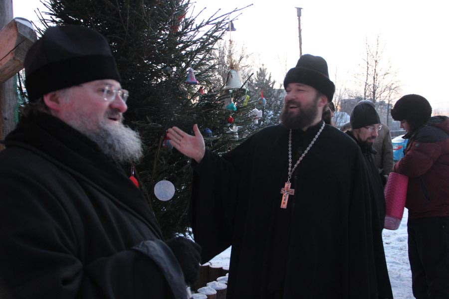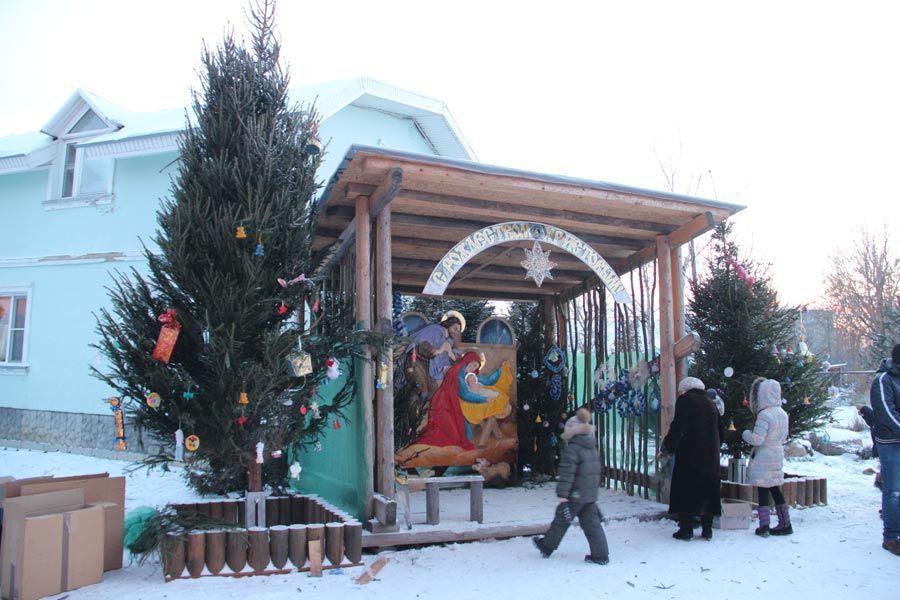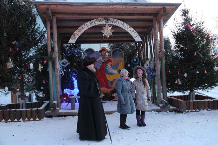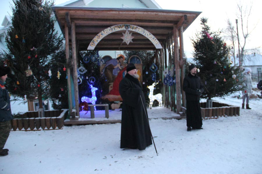 После открытия вертепа в храме состоялось вечернее богослужение Навечерия праздника Рождества Христова.