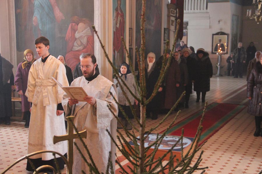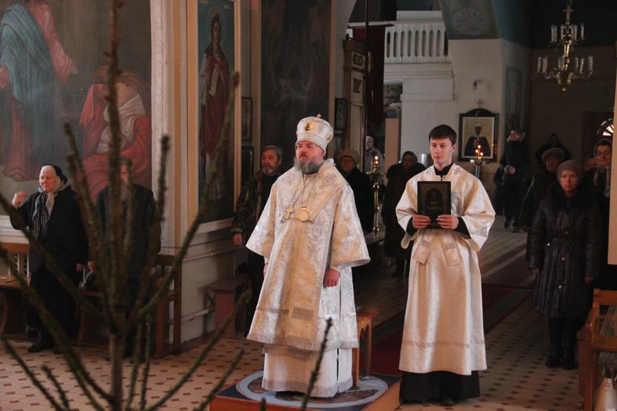 6 января. Рождественский Сочельник. Епископ Козельский и Людиновский Никита совершил вечерню в соединении с Божественной литургией святителя Василия Великого в Благовещенском храме города Козельска.