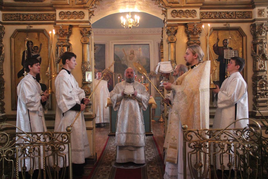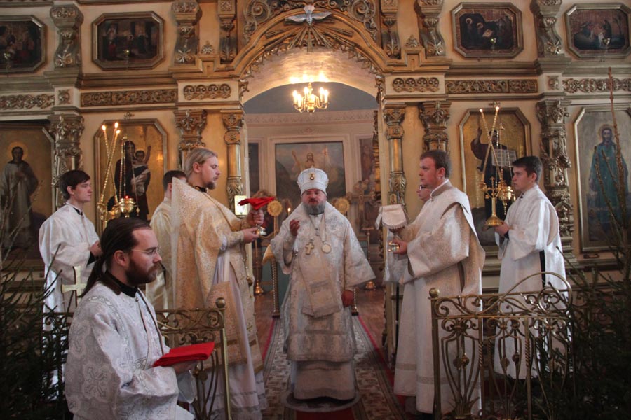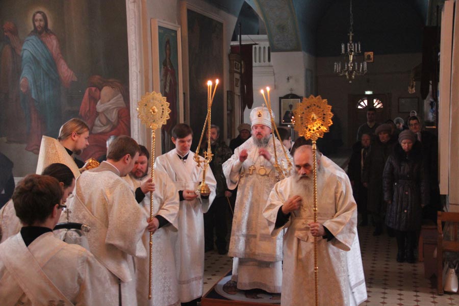 Архипастырю сослужили: протоиерей Павел Морозов и настоятель храма иерей Сергий Барыкин при диаконах Евгении Ковригине и Тихоне Худякове.