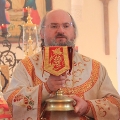 После отпуста литургии был совершен молебен святым Царственным Стастотерпцам, а затем владыка обратился к молящимся с проповедью. Архипастырь поздравил благочинного округа протоиерея Александра Карпова с памятным событием в его жизни – 35-летием со дня рождения и преподнес ему в дар Святое Евангелие.