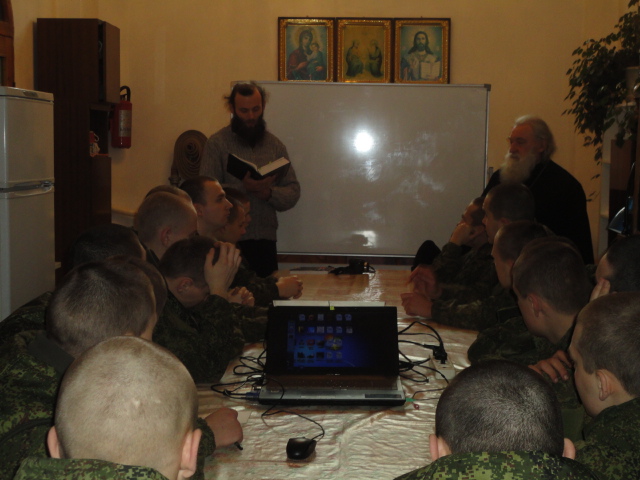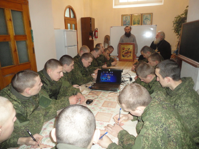 4 января в Свято-Никольской церкви города Козельска клириками храма протоиереем Валерием Клиновым и диаконом Сергием Дроздом была про-ведена беседа о празднике Рождества Христова с военнослужащими войсковой части 44240.