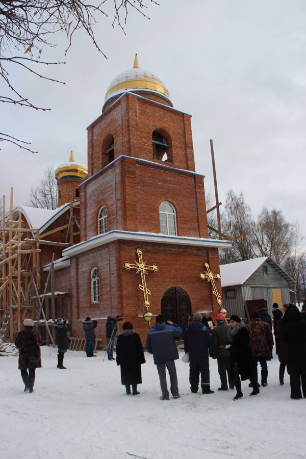 14 января епископ Козельский и Людиновский Никита совершил освящение крестов на купола храма Казанской иконы Божией Матери села Букань Людиновского района.