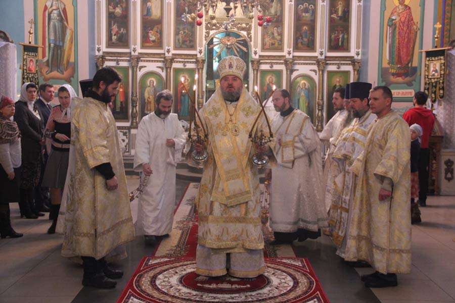 Архиерейское богослужение в храме преподобного Сергия Радонежского города Людиново
