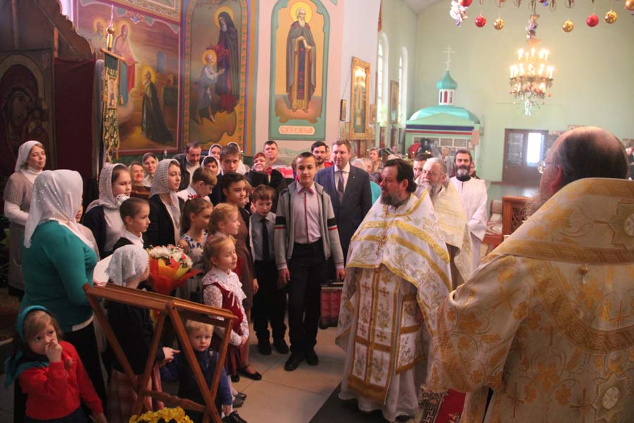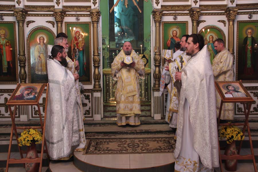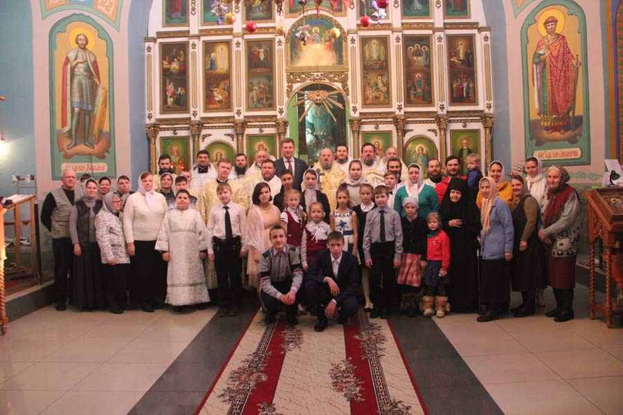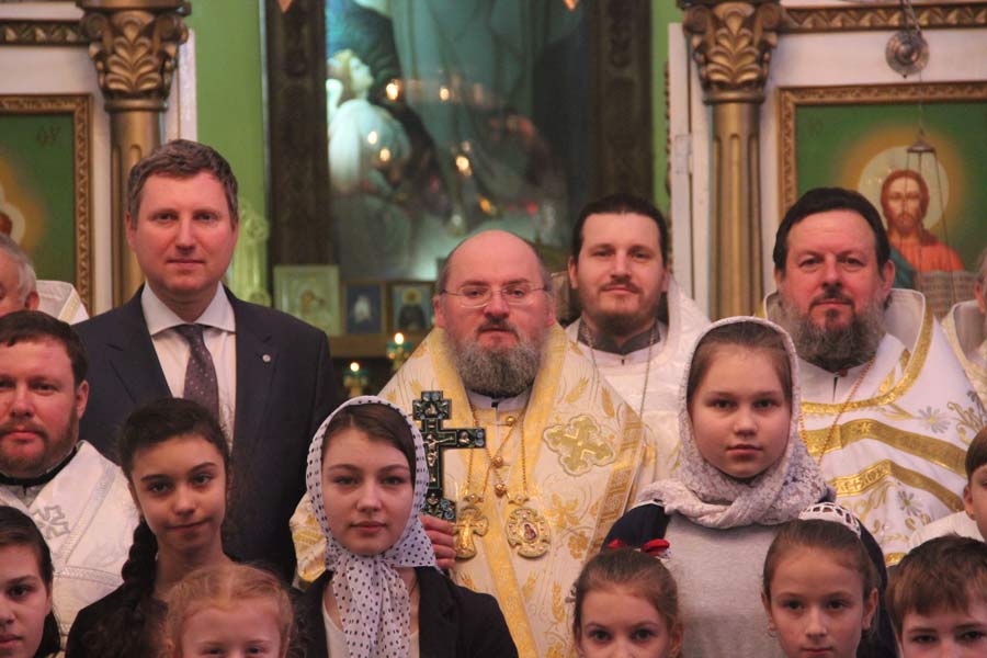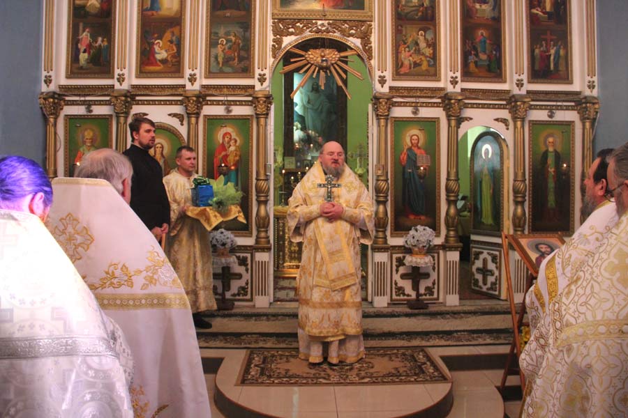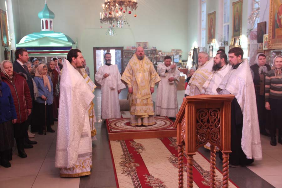 Архипастырю сослужили: настоятель храма, благочинный округа – протоиерей Василий Биляк, протоиерей Дмитрий Губаль, протоиерей Алексий Жиганов, протоиерей Михаил Карпенко, иерей Александр Довганюк, иерей Артемий Арутюнян, диакон Евгений Ковригин, диакон Тихон Худяков и диакон Андрей Соколов.