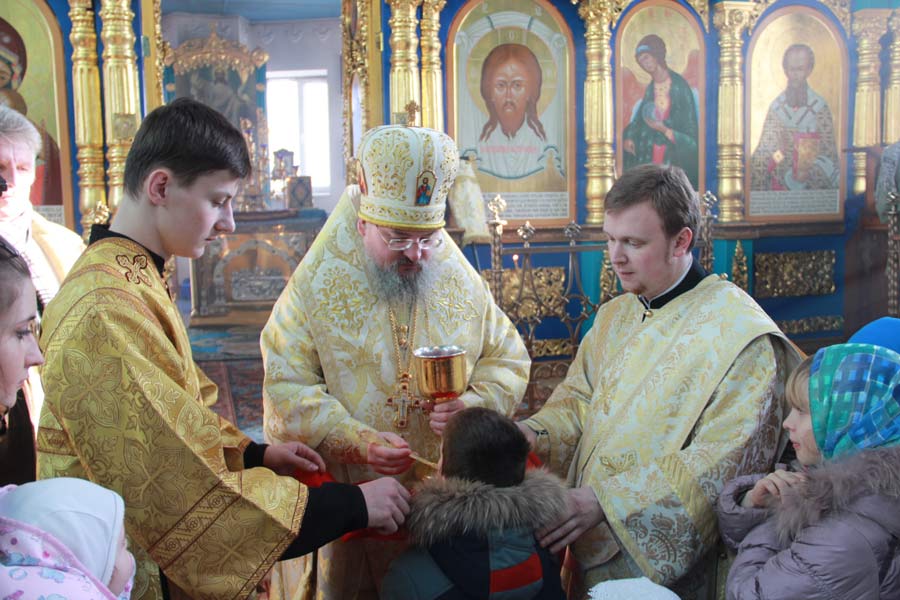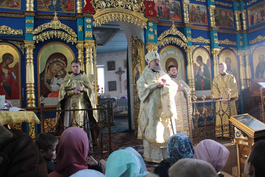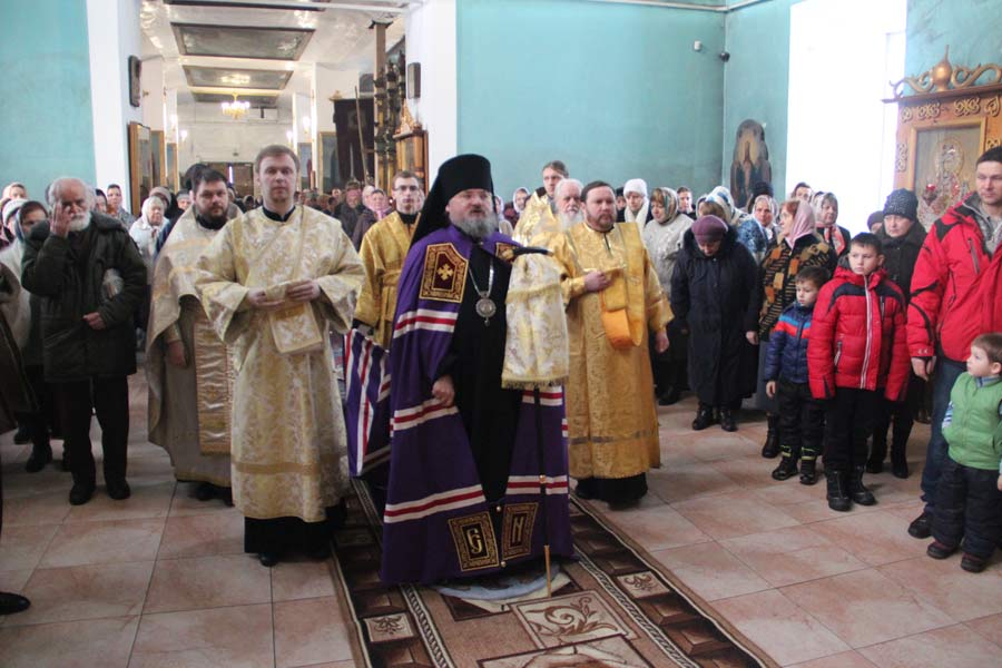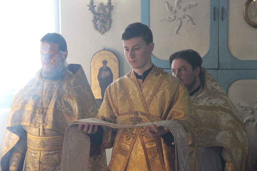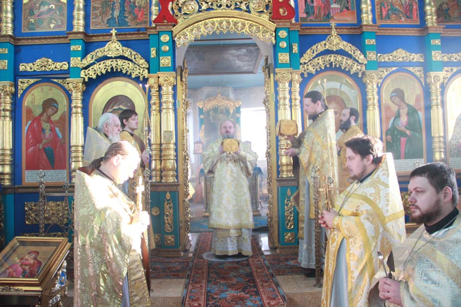Архипастырю сослужили: благочинный округа настоятель храма протоиерей Алексий Казаков, протоиерей Николай Казаков, иерей Антоний Хатунцев, иерей Стефан Колбасин, иерей Антоний Демин, диакон Евгений Ковригин и диакон Олег Леонов.