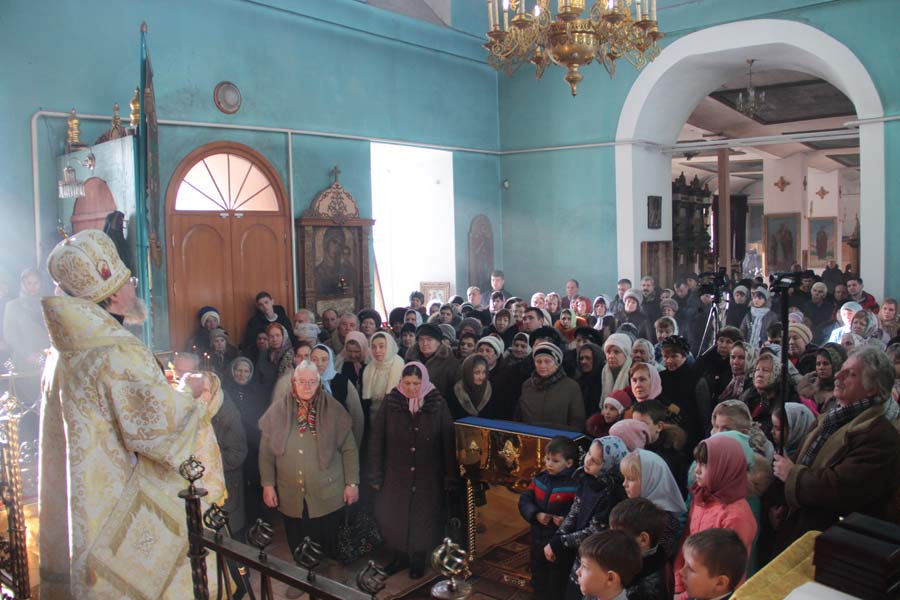По отпусте литургии священнослужители совершили славление праздника Богоявления, а затем владыка обратился к молящимся с проповедью. Настоятель храма протоиерей Алексий Казаков, по благословению Святейшего Патриарха Московского и всея Руси Кирилла, был удостоен медали в честь 1000-летия преставления святого равноапостольного князя Владимира, также сей медалью были награждены и ряд прихожан храма: Казакова Тамара Алексеевна, Бушуева Лариса Николаевна, Петров Алексей Львович, Панов Сергей Алексеевич и Хохлов Александр Иванович.
