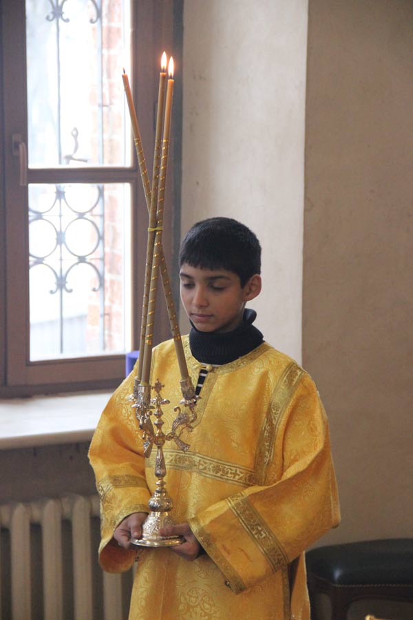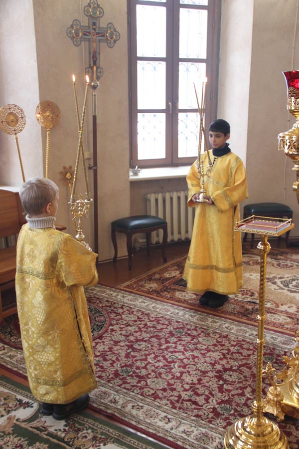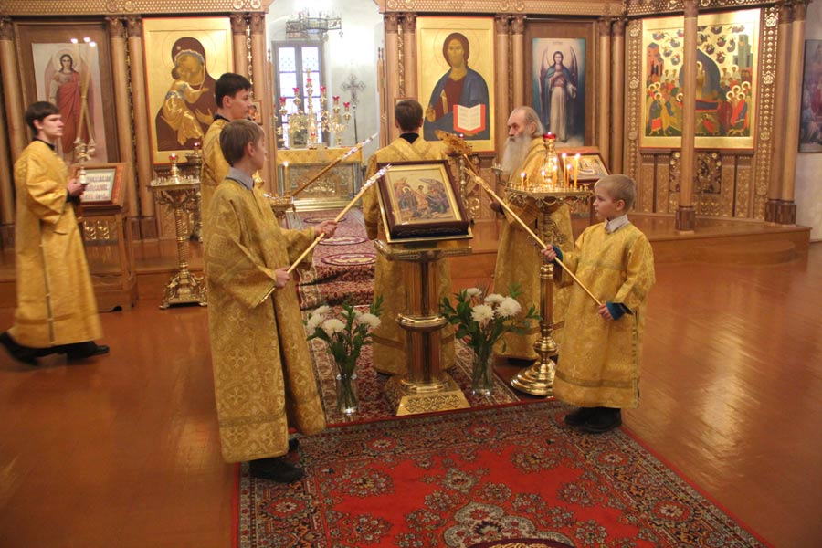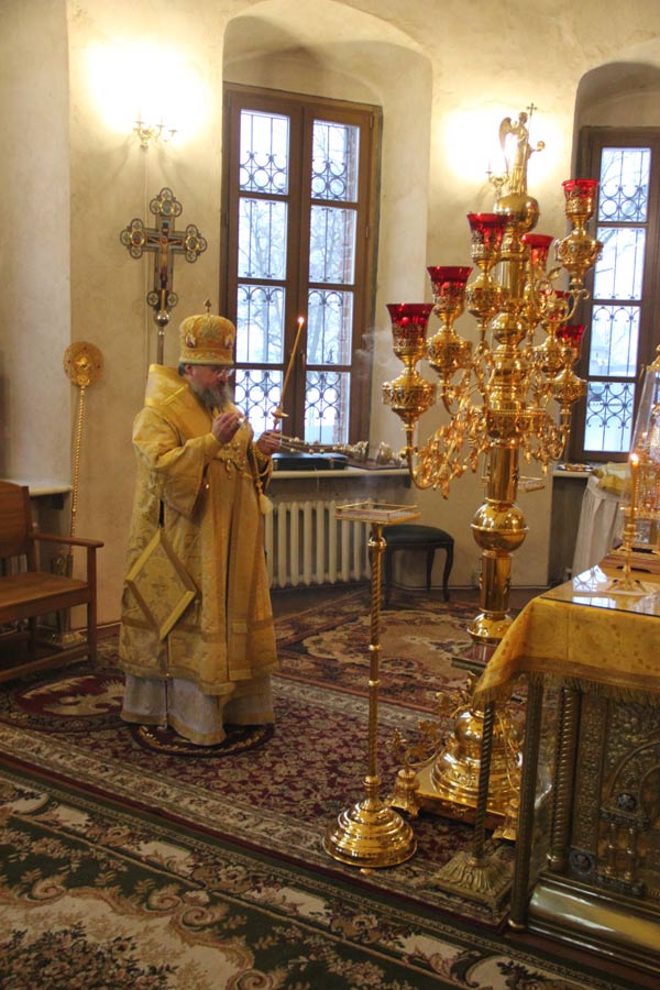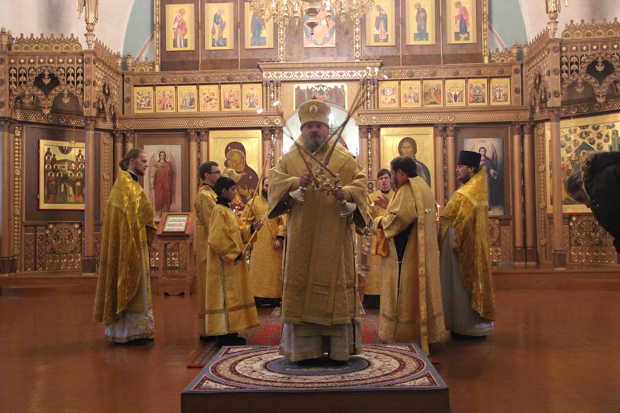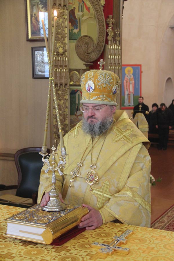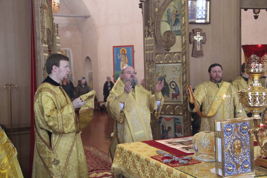 Архипастырю сослужили иерей Антоний Хатунцев, иерей Елисей Тимофеев, диакон Евгений Ковригин и диакон Олег Леонов. За литургией на сугубой ектенье , в связи с эпидемией гриппа, были провозглашены особые прошения о недугующих.