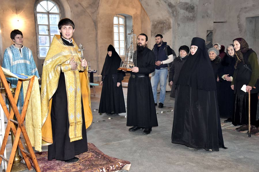 3 февраля в возрождающуюся Вознесенскую обитель, (бывший хлебозавод) монахиней Екатериной, по благословению Владыки назначенной ответственной за восстановление и благоустройство обители, из Москвы был привезен список чудотворной иконы Ахтырской Божией Матери.