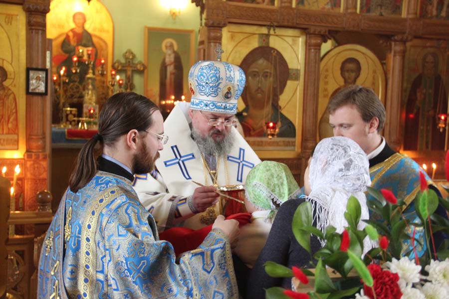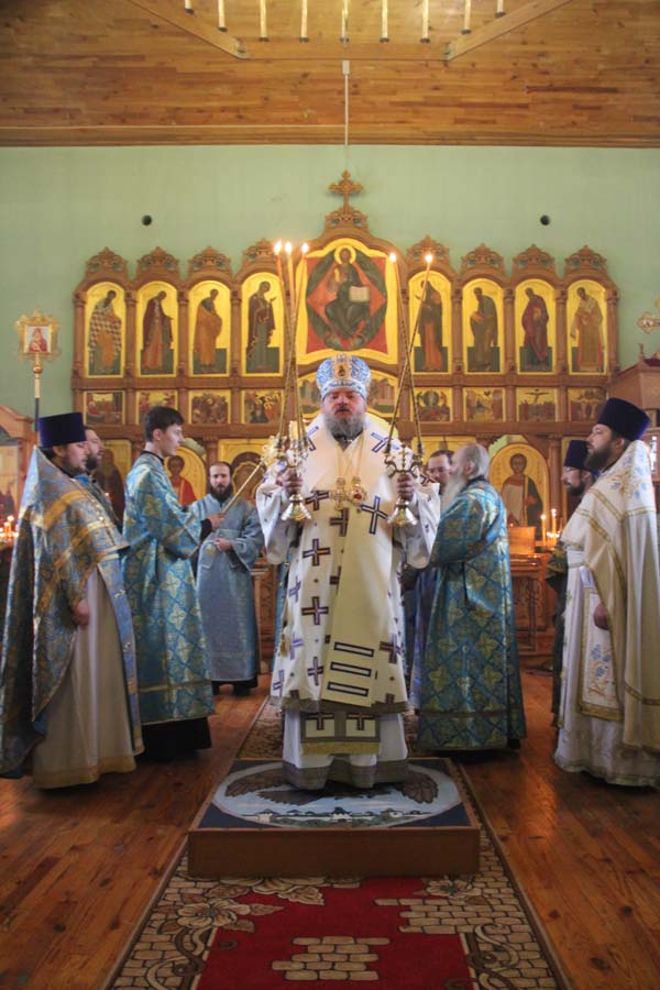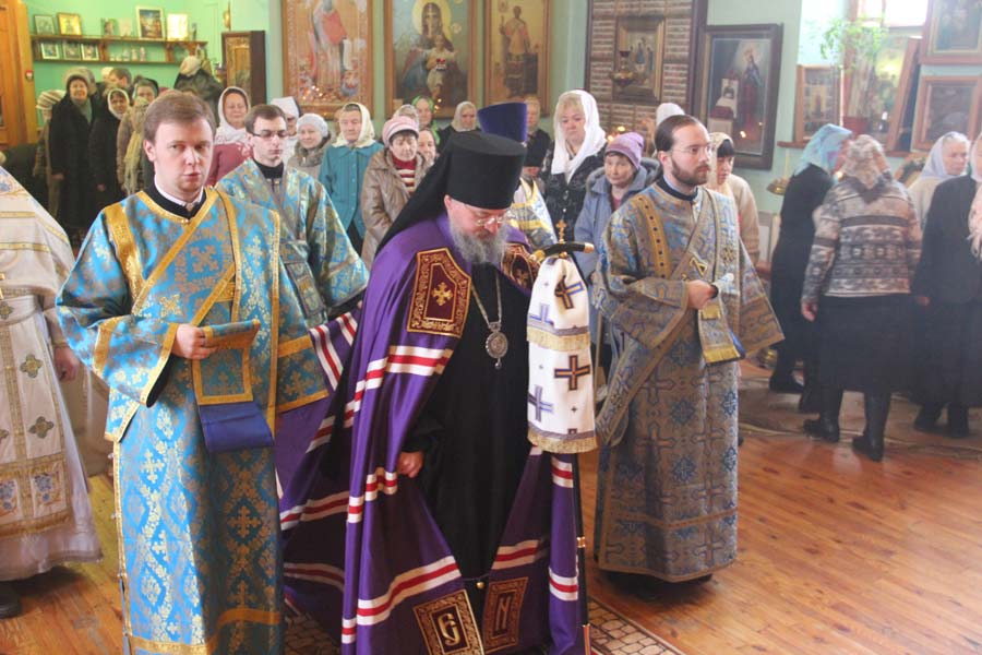 Его Преосвященству сослужили: настоятель храма, секретарь епархии протоиерей Владимир Бахаев, иерей Антоний Хатунцев, иерей Антоний Лунин, иерей Алексий Боков, диакон Евгений Ковригин и диакон Тихон Худяков.