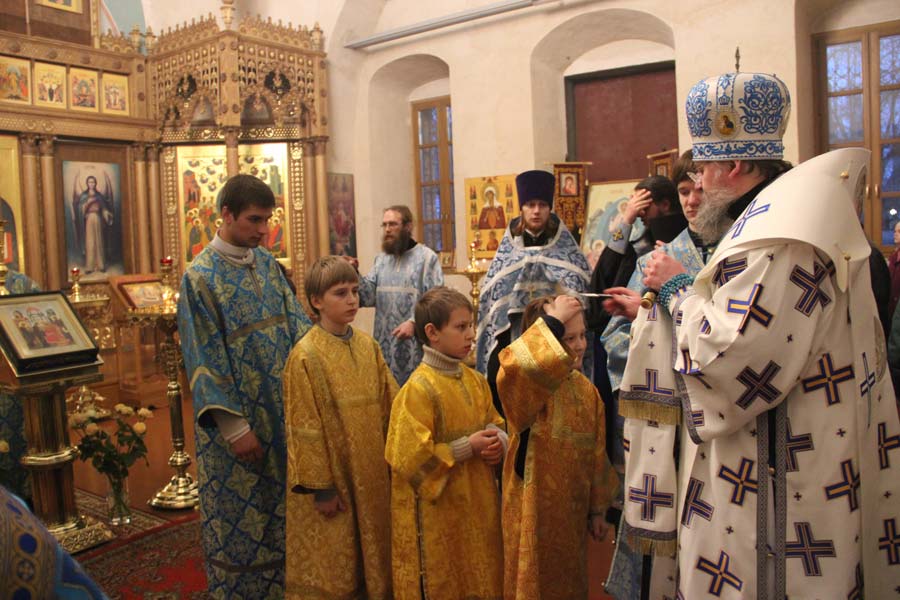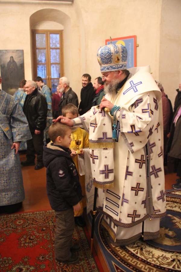 14 февраля. Накануне великого праздника Сретения Господня епископ Козельский и Людиновский Никита в сослужении соборного клира совершил всенощное бдение в Свято-Успенском соборе города Козельска.