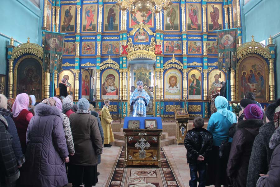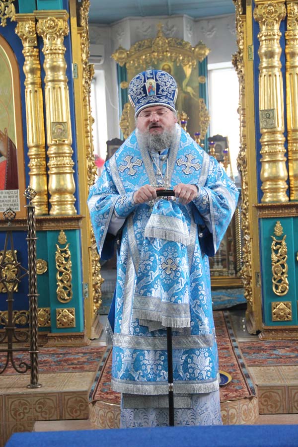 По отпусте литургии священнослужители совершили, в центре храма, праздничный молебен Пресвятой Богородице и святителю Алексию, митрополиту Московскому. По завершении молебного пения епископ Никита обратился к богомольцам с архипастырским словом.
