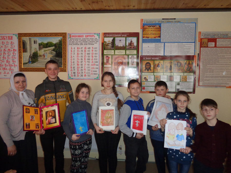 28 февраля в воскресной школе «Радонеж» при храме во имя преподобного Сергия Радонежского, прошел конкурс рисунков, посвященный Дню православной книге. На уроке дети не только нарисовали православную книгу, но и рассказали почему именно эту книгу выбрал ученик.