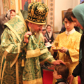 Архипастырю сослужили: настоятель храма протоиерей Сергий Сычев, иерей Антоний Хатунцев, иерей Виктор Носов и диакон Евгений Ковригин. По отпусте литургии священнослужители совершили праздничный молебен пред образом святой праведной Матроны Московской после которого владыка обратился к богомольцам с архипастырским словом.
