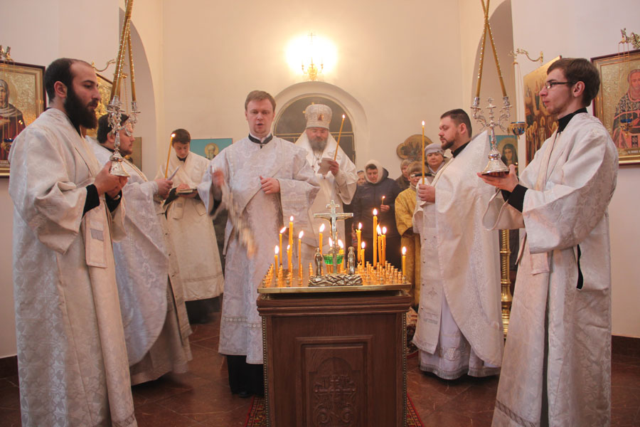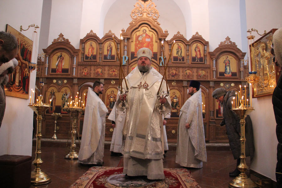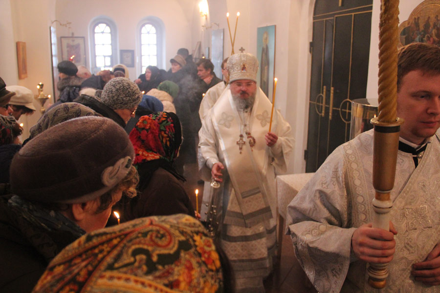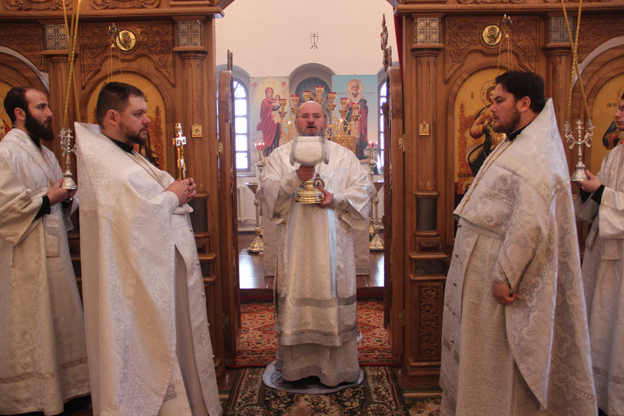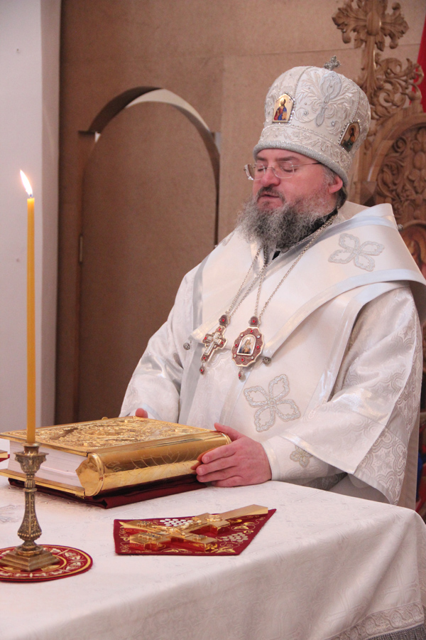 Архипастырю сослужили: настоятель храма иерей Антоний Демин, иерей Антоний Хатунцев и диакон Евгений Ковригин. По отпусте литургии священослужители совершили панихиду, в завершении которой владыка обратился к молящимся с проповедью.