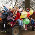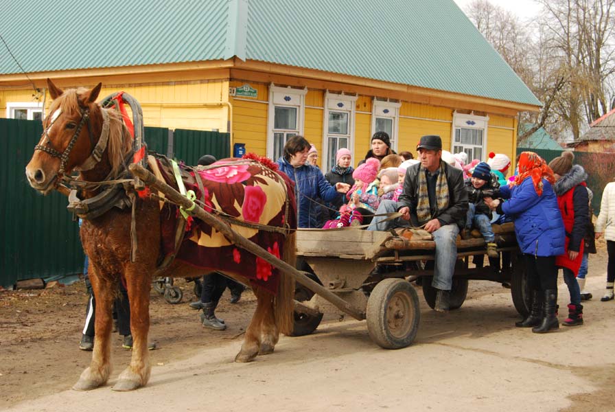 За столом долго не сидели: воспитанников ждали веселые конкурсы и масленичные забавы. А после чаепития дети гурьбой высыпали на улицу – катание на лошадке стало традицией нашей школы. Доброе животное, украшенное цветами и ленточками, послушно тянуло тележку с шумными пассажирами. Катались до головокружения, а потом кормили лошадку блинами – пусть и у нее будет праздник!
